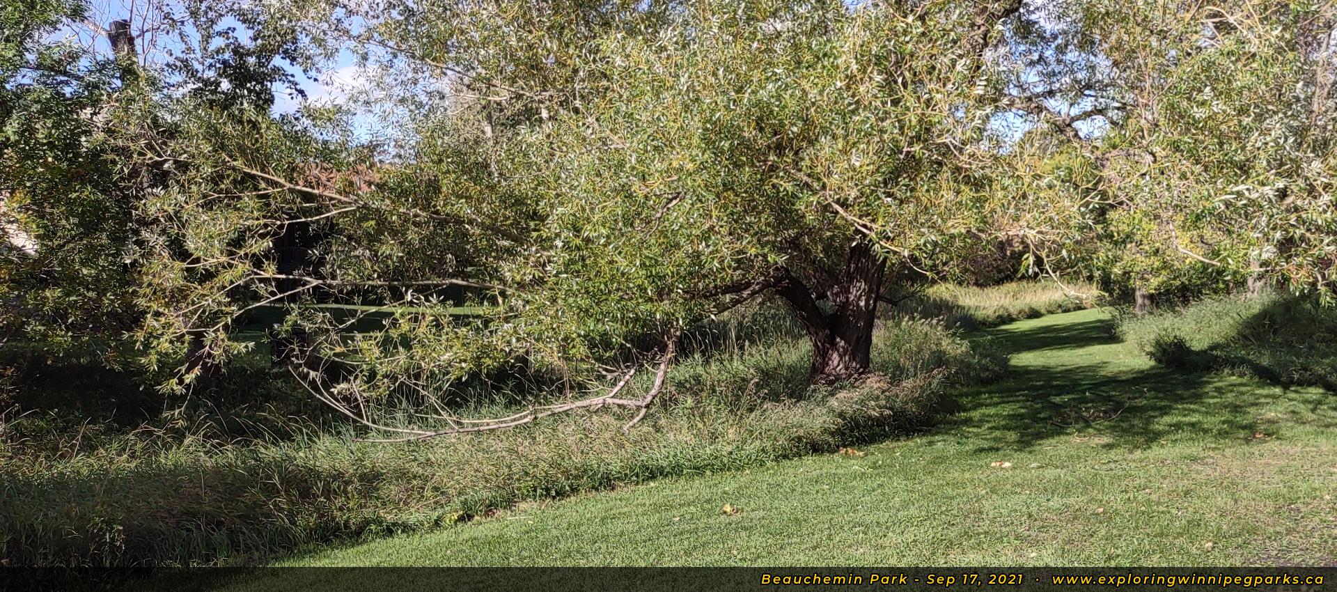 Beauchemin Park sits on the south shore of the Assiniboine River, splitting the Southboine neighourhood into two sections between Berkley St and Elmvale Cres. With multiple entrances, the park offers several separate open areas, pathways through the trees to the river, and a playground.