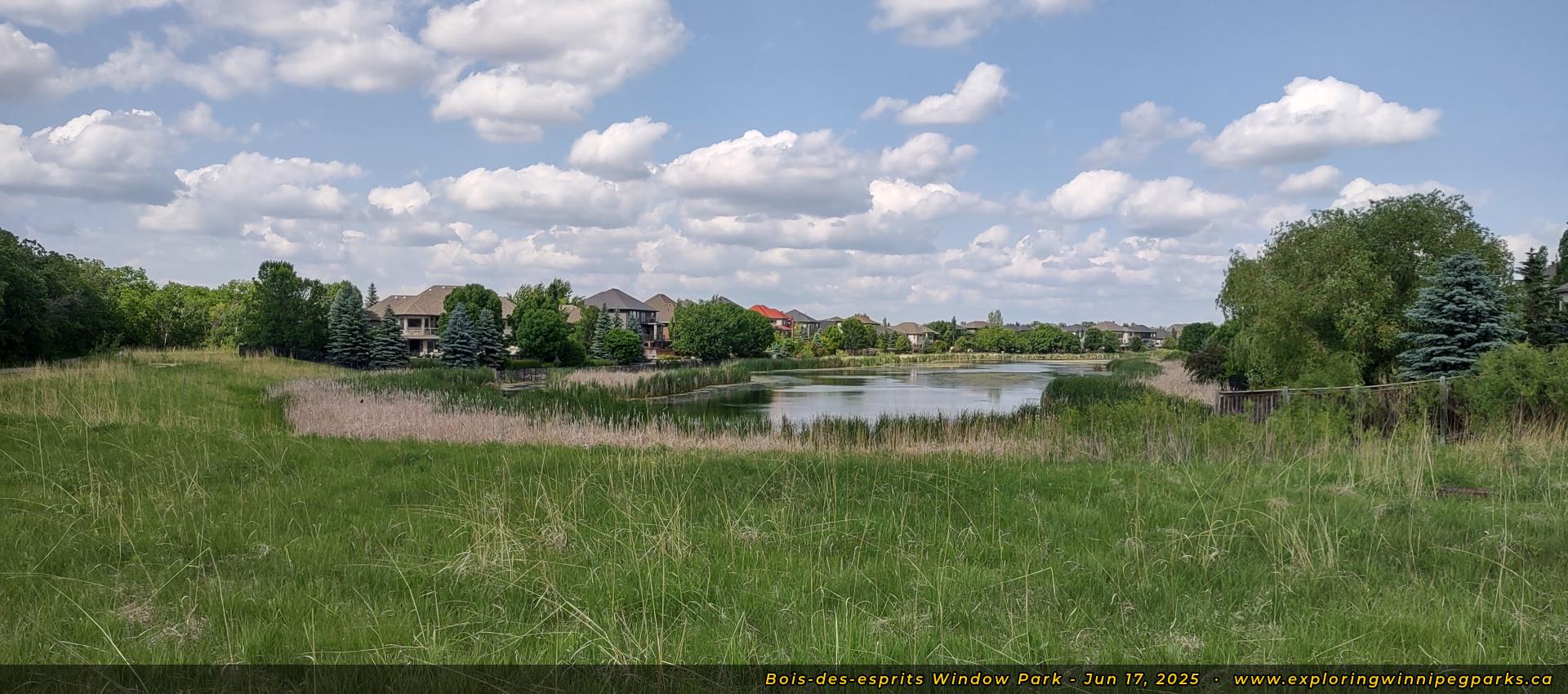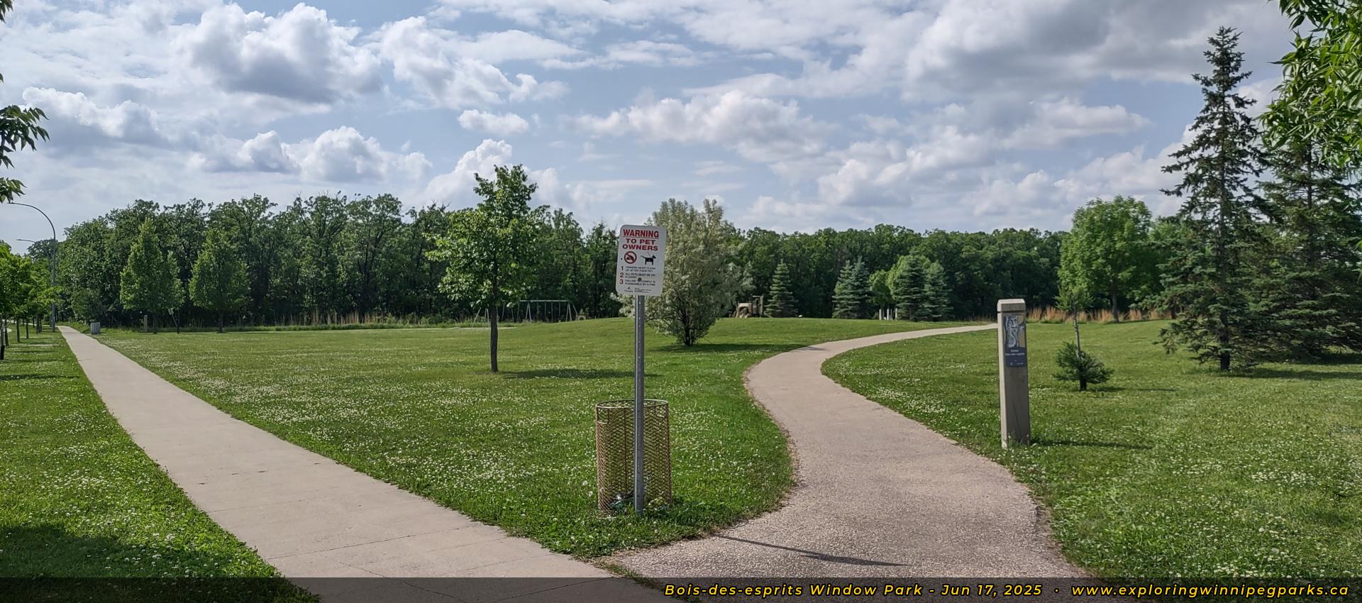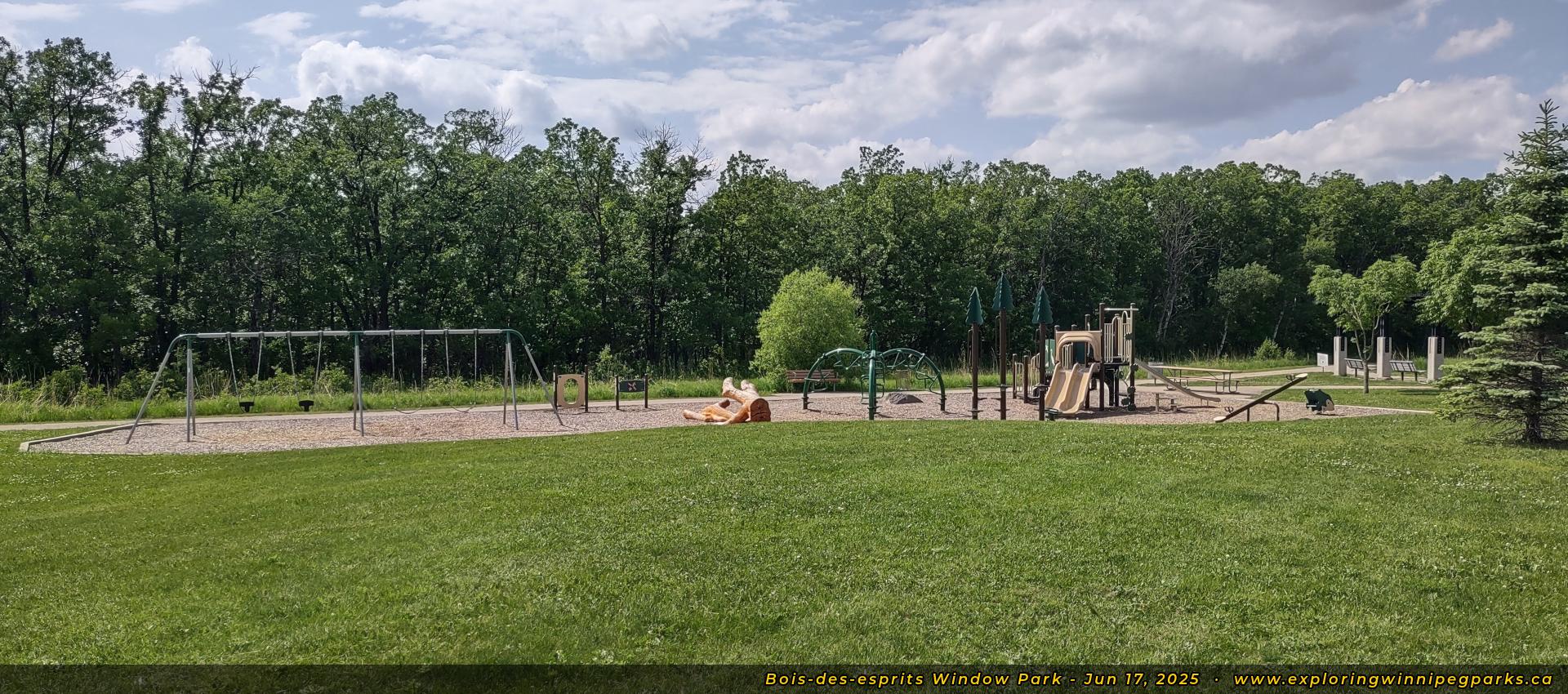The Bois-des-esprits Window Park runs along the southeast side of the Bois-des-esprits forested area, on the north side of Shorehill Dr. A long pathway leads past a playground, an open area, and a pond on its way into the forested trails of Bois-des-esprits.