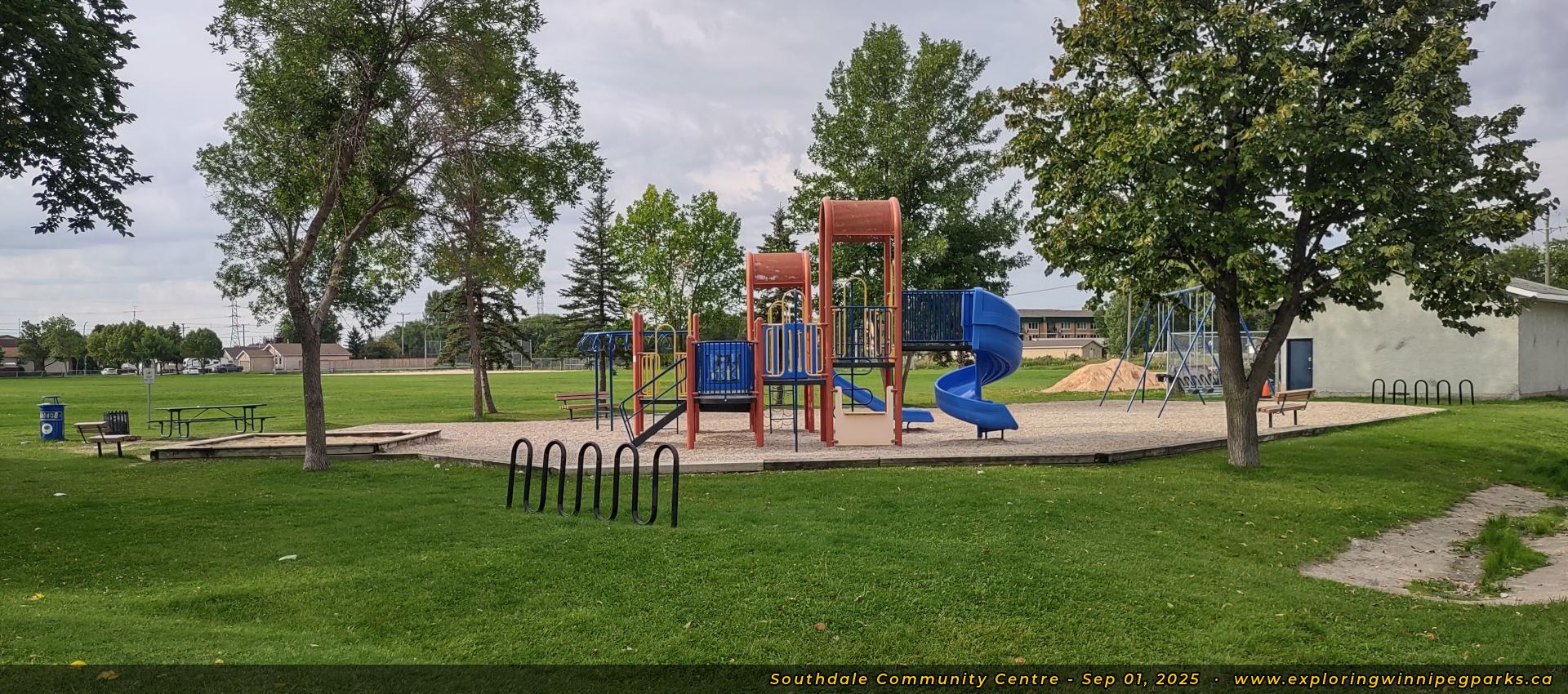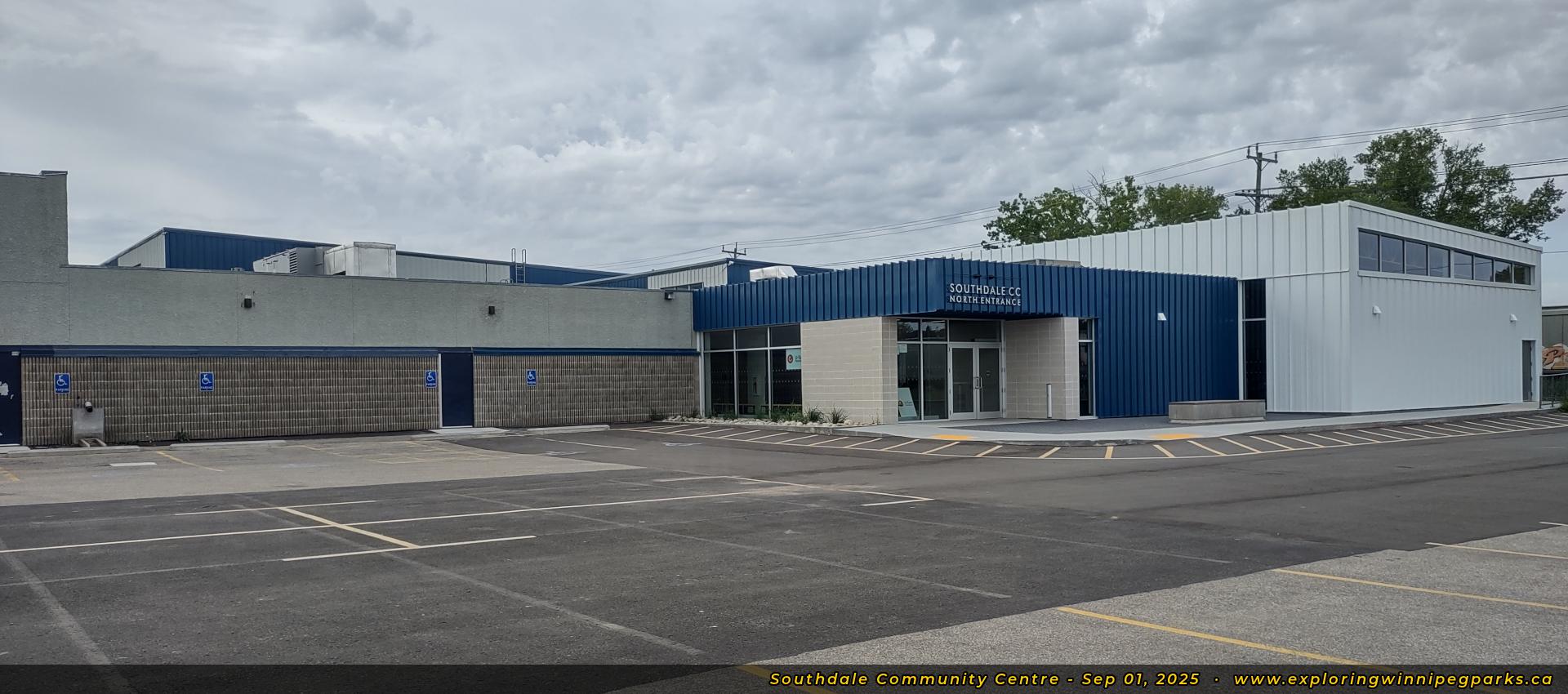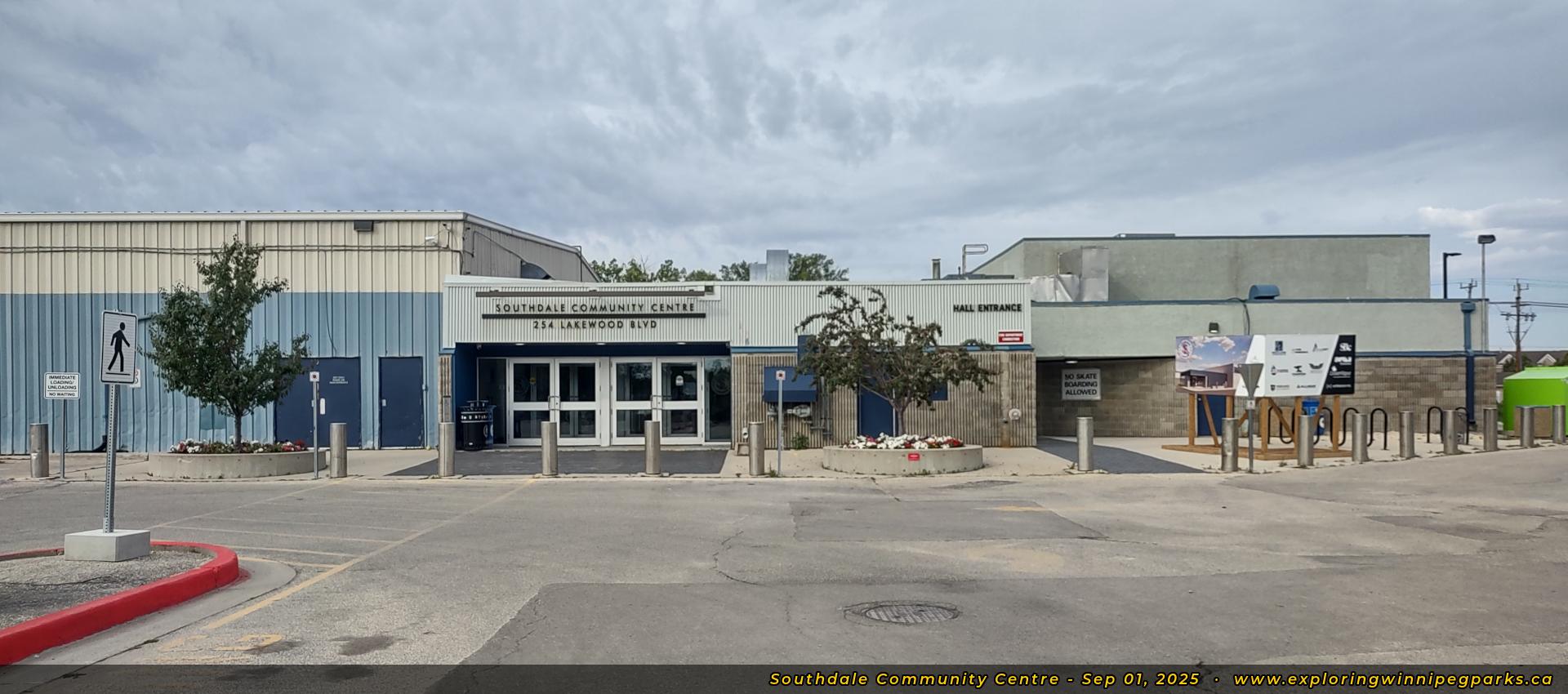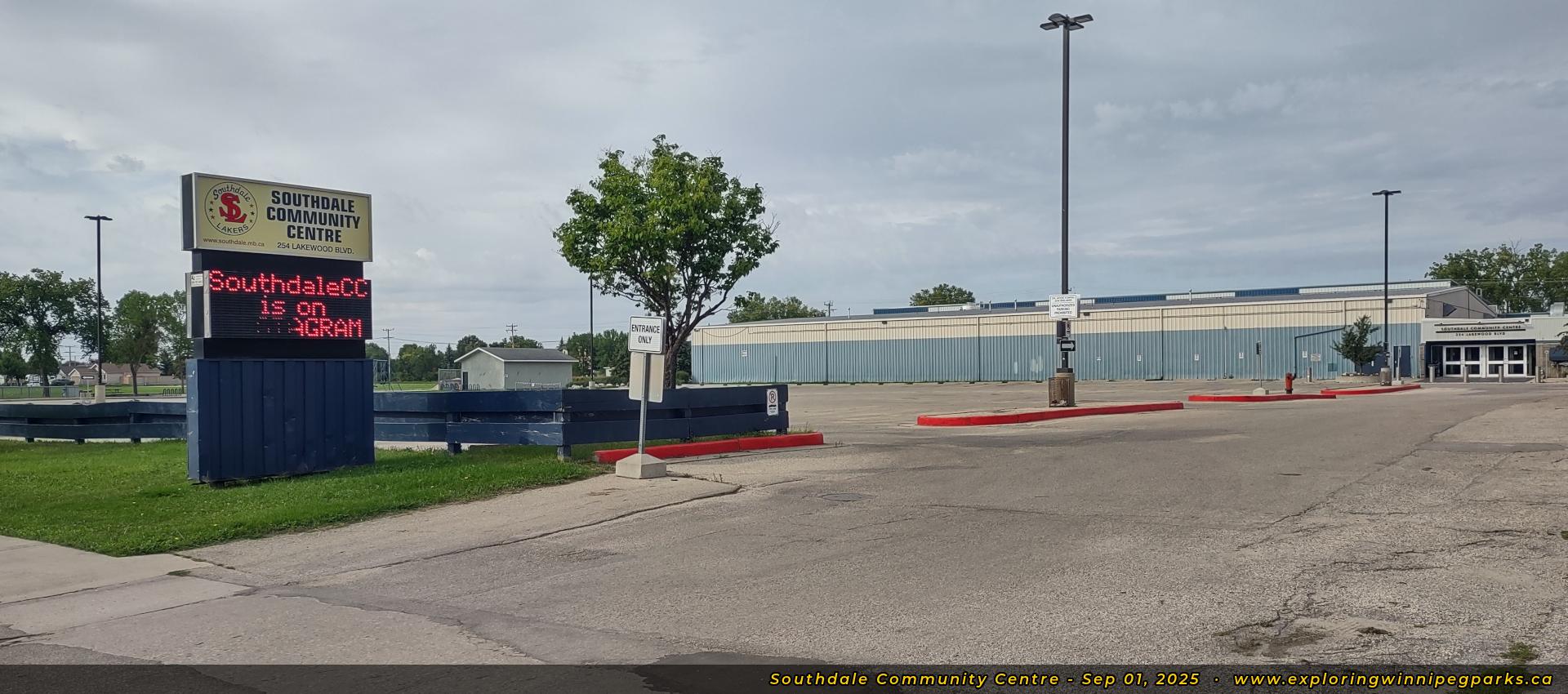 The Southdale Community Centre is found on the west side of Lakewood Blvd, a few blocks north of Abinojii Mikanah. Sharing space with J.H. Bruns Collegiate, the community centre offers an indoor arena and fitness facilities, a playground and wading pool, and several outdoor athletic fields.