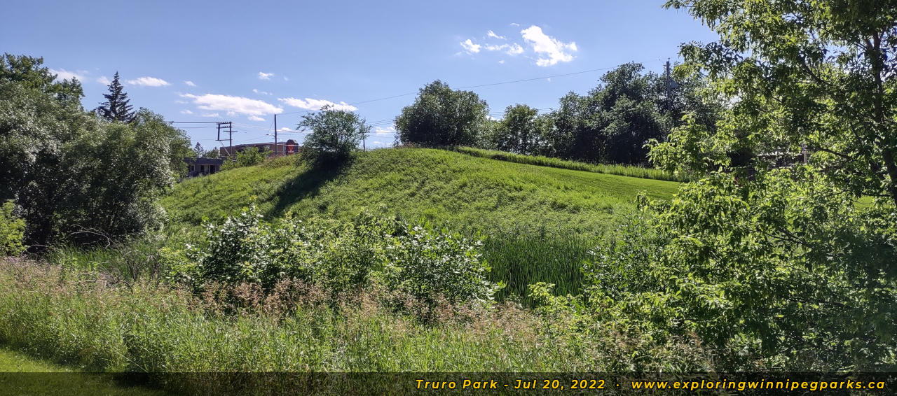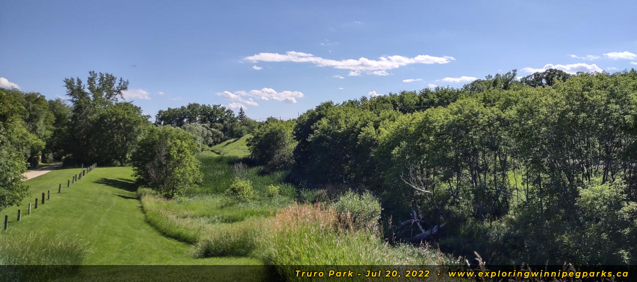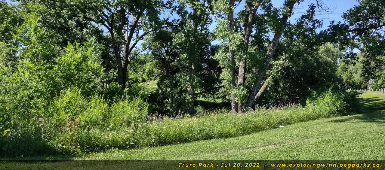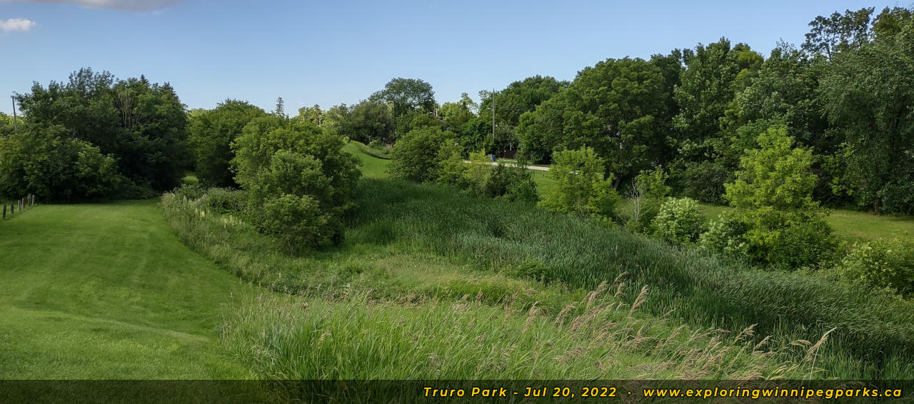Truro Park is located on the north side of Portage Ave, between Albany St and Sackville St. Part of the Truro Creek Greenway, there's plenty of foliage surrounding the creek, along with several strips of open areas and hills.