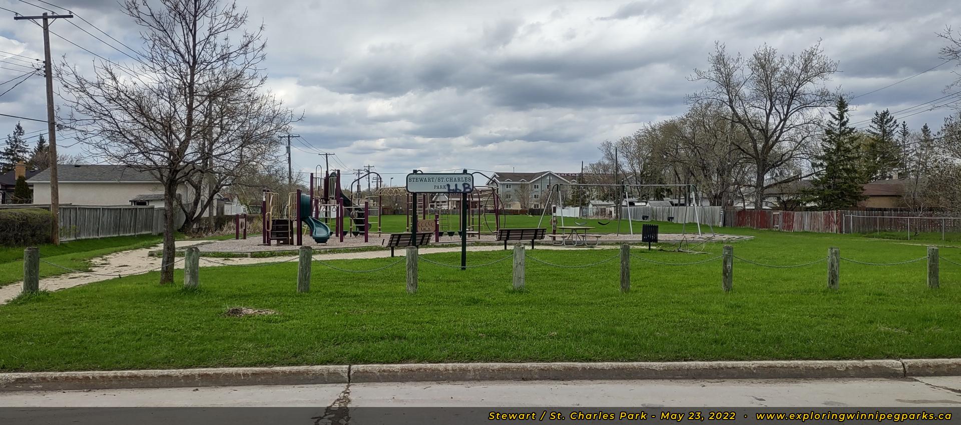Stewart / St. Charles Park is located on the north side of Allard Ave, between St. Charles St and Stewart St. There's a playground, and a long thin open area.