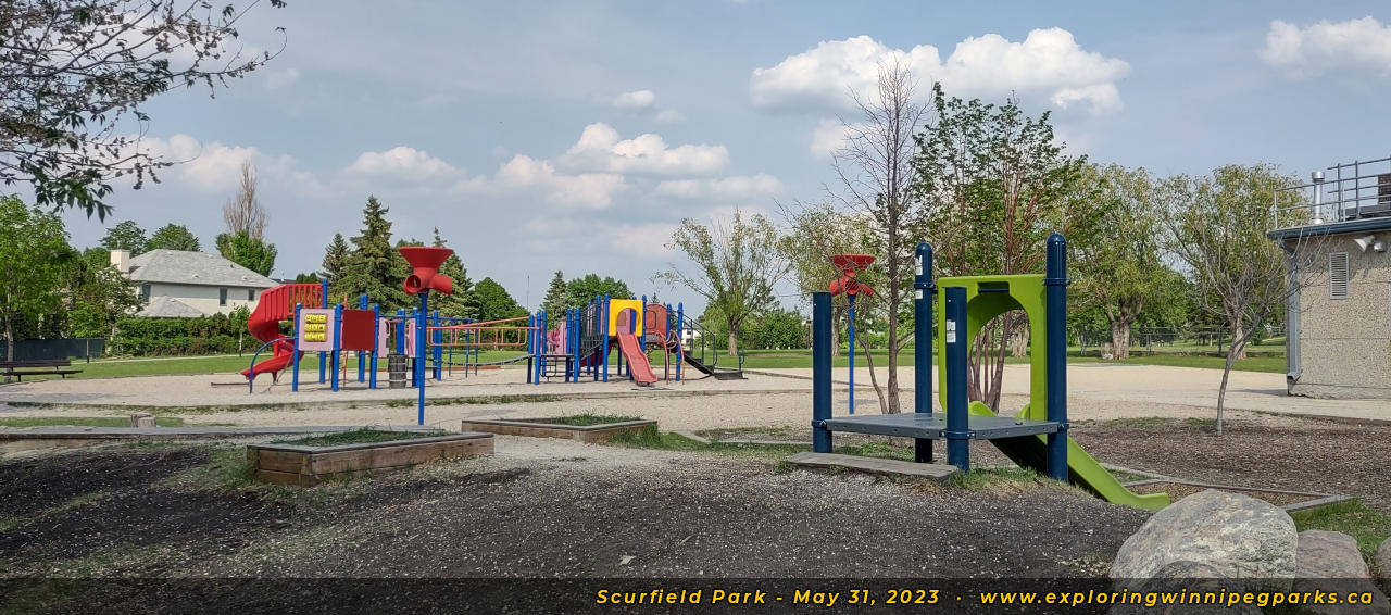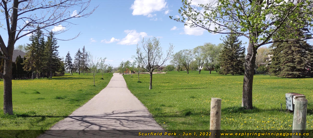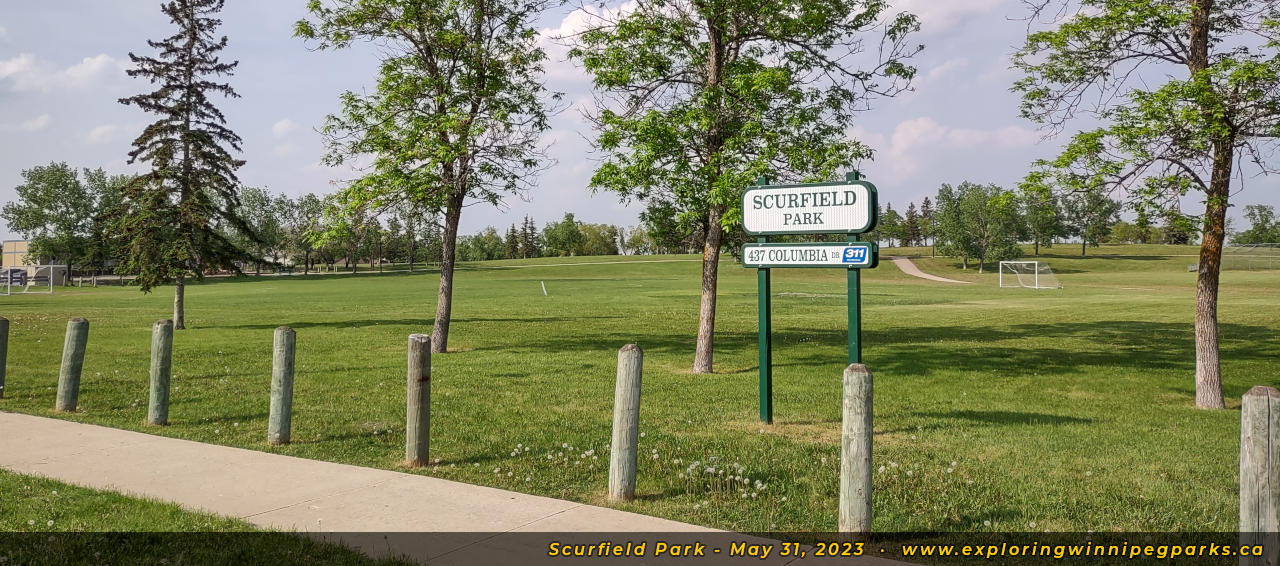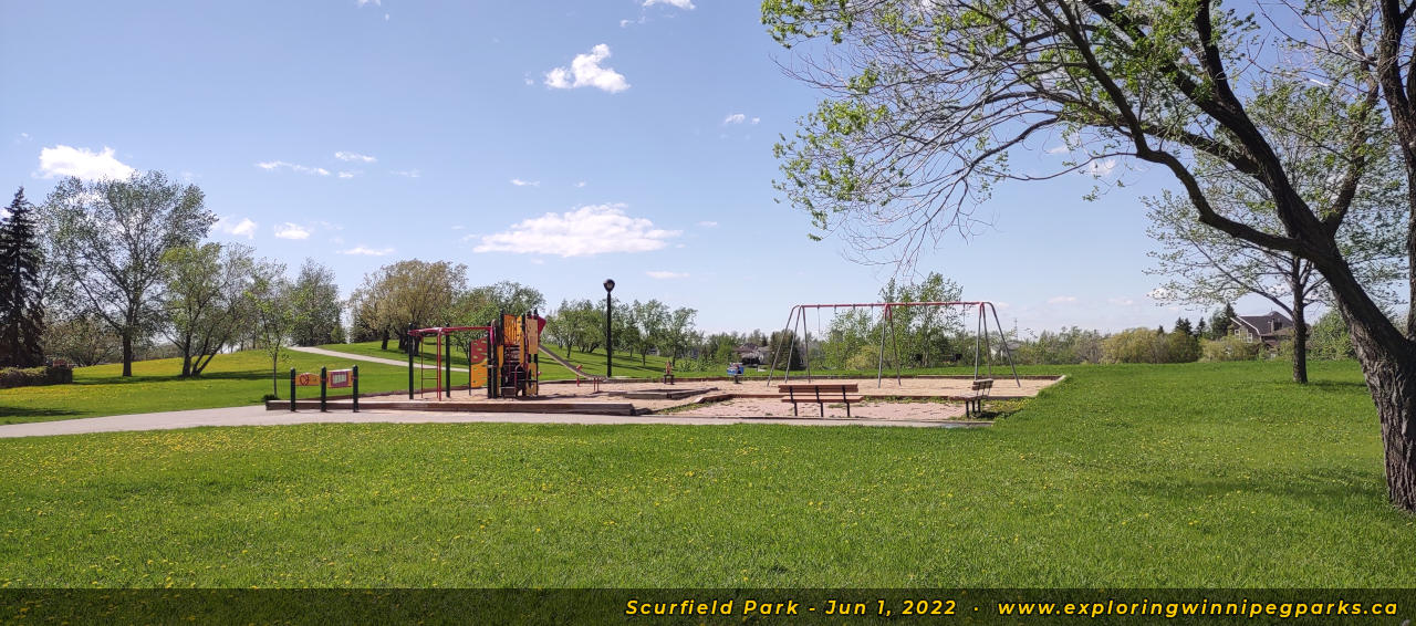 Scurfield Park is located on the east side of the intersection between Scurfield Blvd and Columbia Dr, next to Whyte Ridge School.