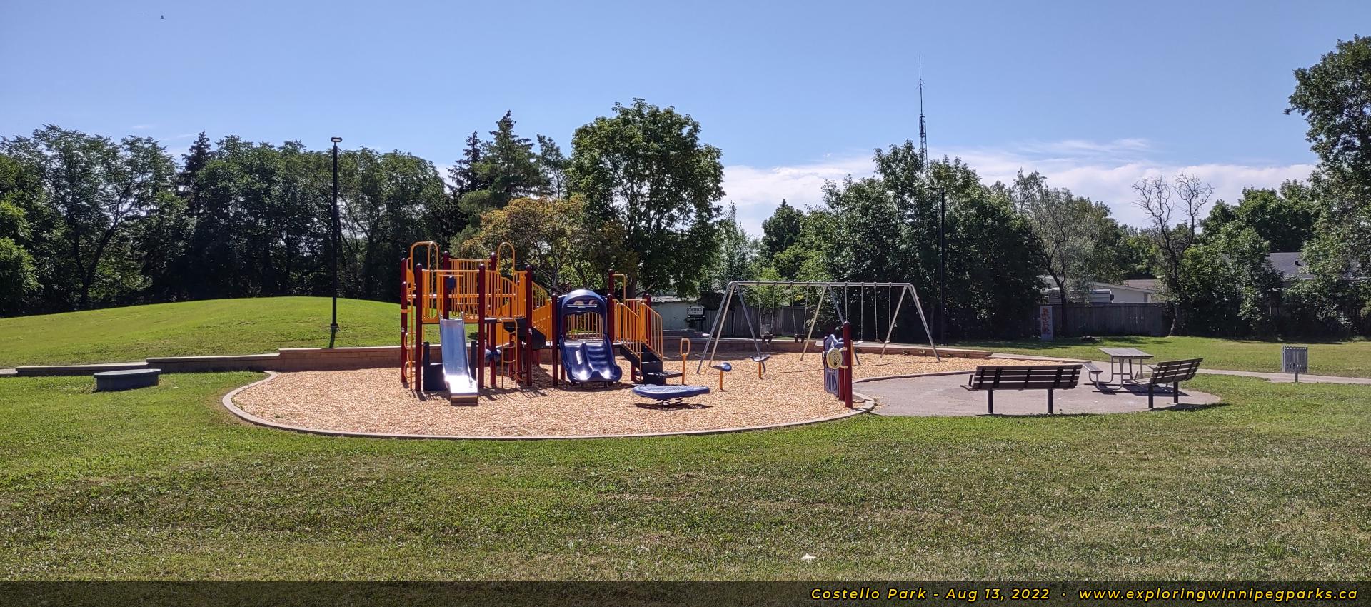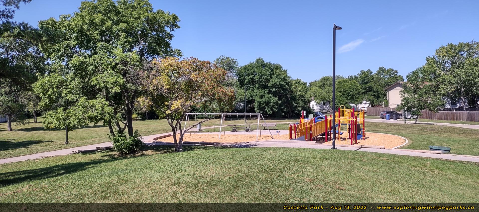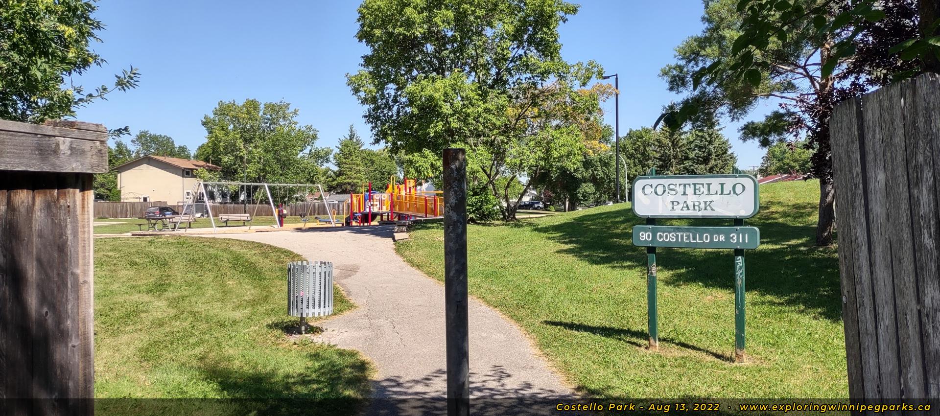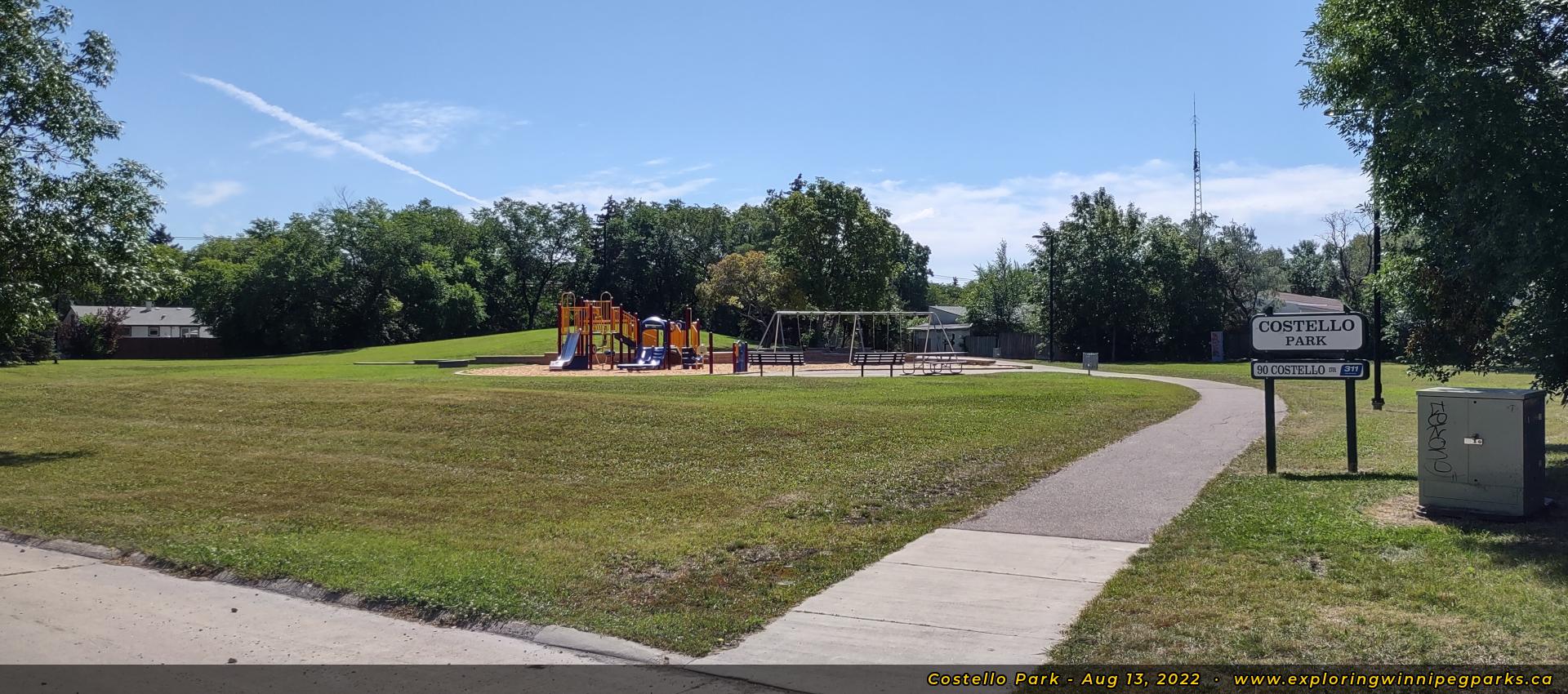 Costello Park is located at the southeast curve along Costello Dr, a few blocks east of John Taylor Collegiate. There's a playground and several small open areas.