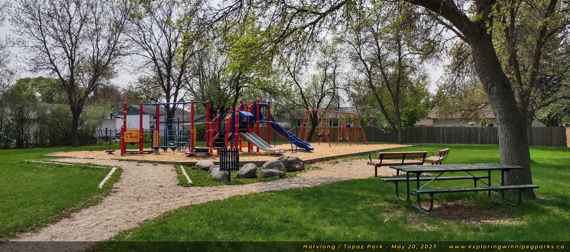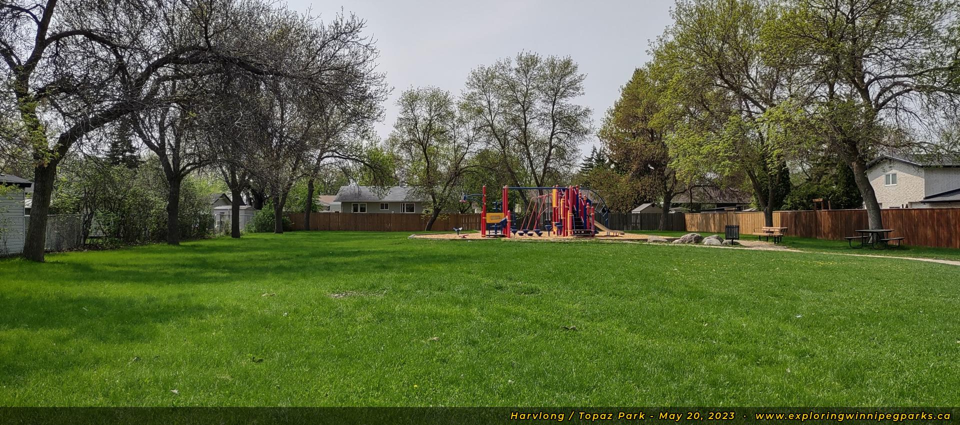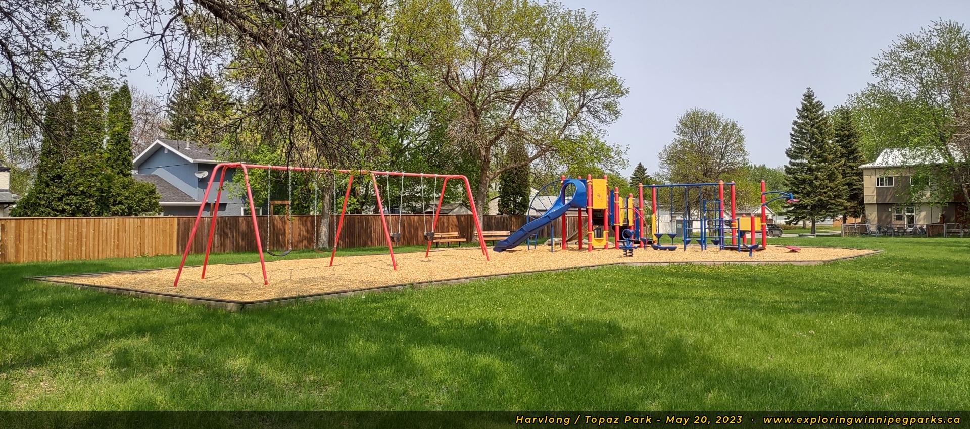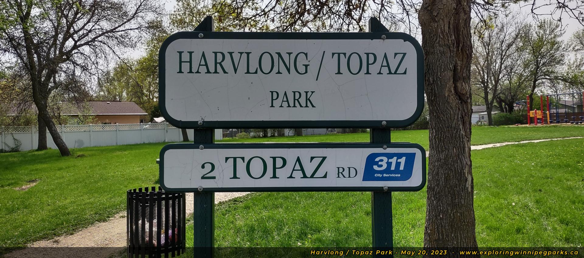Harvlong / Topaz Park is located at the corner of Topaz Rd and Harvlong Ave. There's a playground surrounded by a small open area.