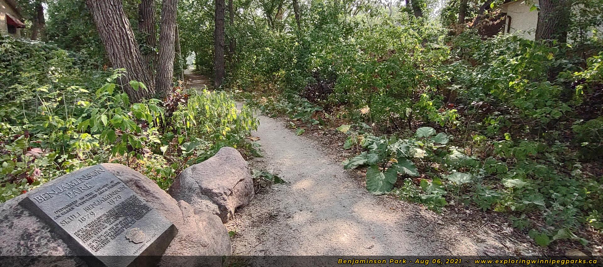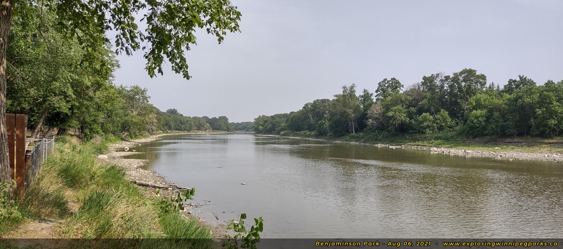 Benjaminson Park sits on the north shore of the Assiniboine River, at the south end of Bedson St along Assiniboine Ave. There's a commemorative plaque honoring Skuli Benjaminson, an early pioneer of the Westwood area, and a view of the Assiniboine River.