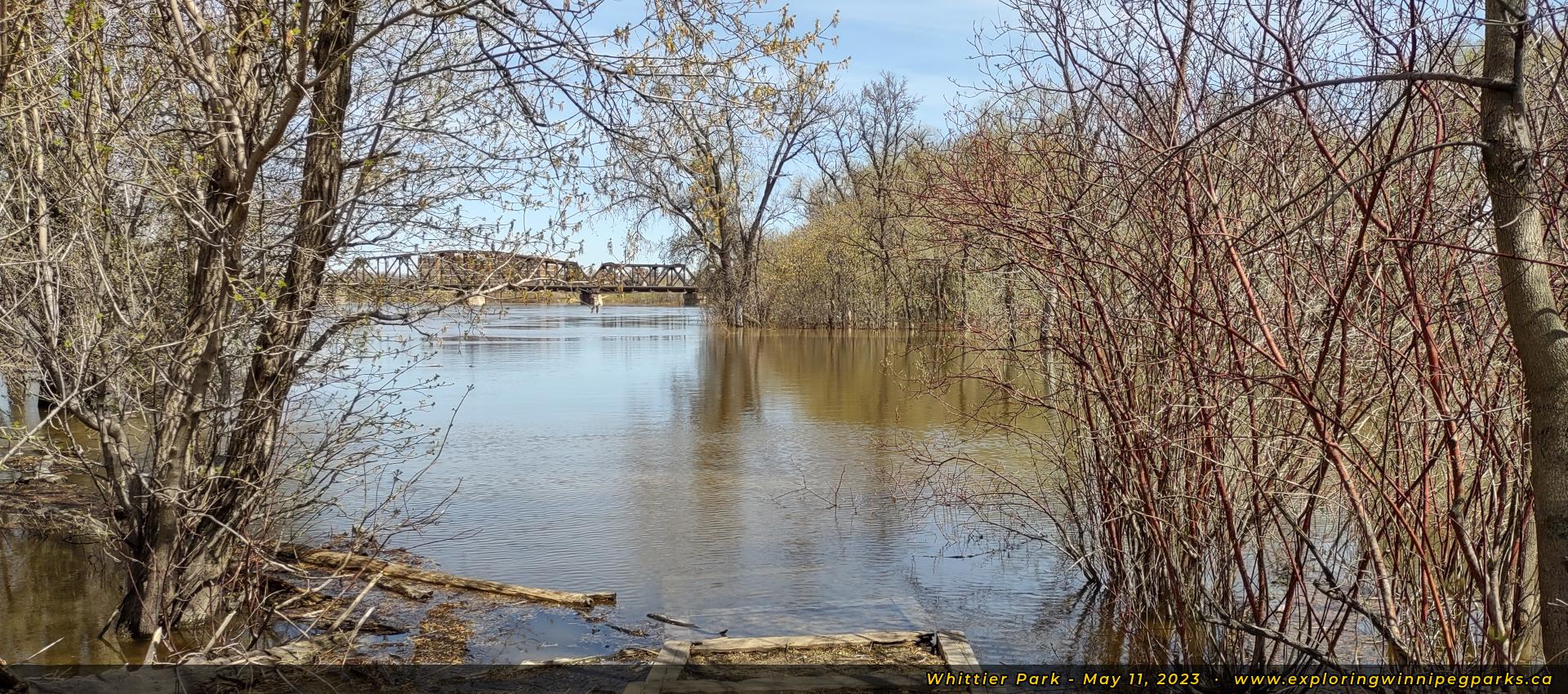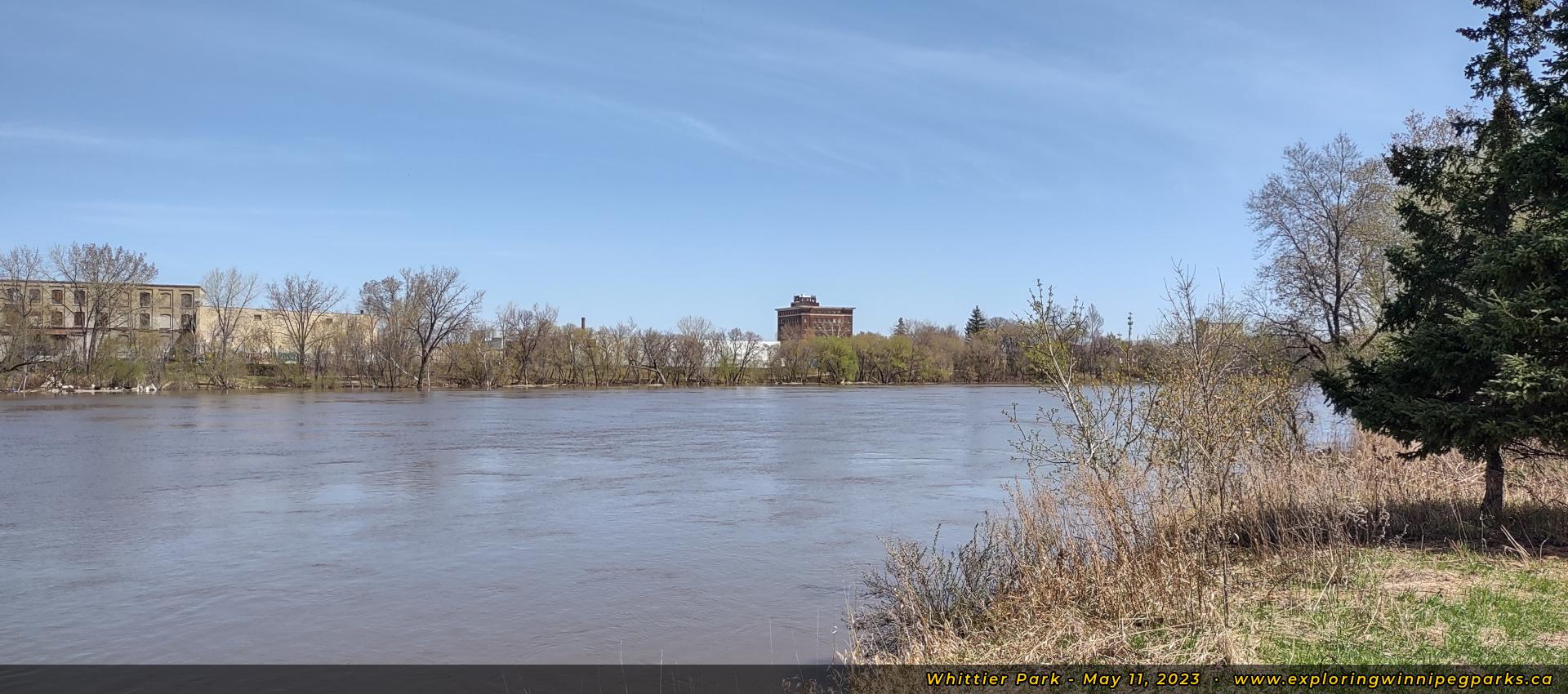Whittier Park is found at the north end of Joseph St, running along a bend on the east shore of the Red River.