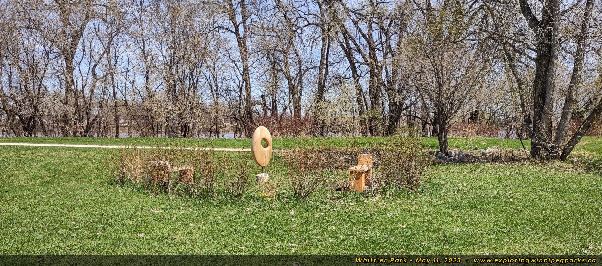 Alongside the river walk, east of the Forest of Hope, you'll find this unmarked wood carving. Facing north.