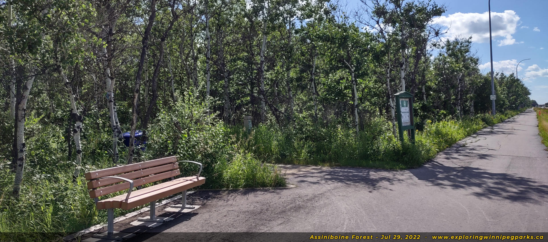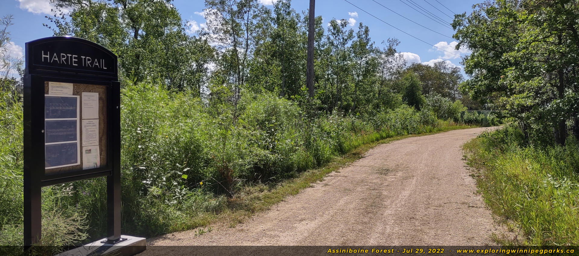 The Assiniboine Forest covers a large area, flanking either side of Grant Ave between Chalfont Rd and Shaftesbury Blvd. A number of trails are available throughout the forested area, with the main trail beginning south of the Assiniboine Park Zoo, and running south and east to the corner of Wilkes Ave and Shaftebury Blvd. The Harte Trail runs east-west along the south edge of the forest.