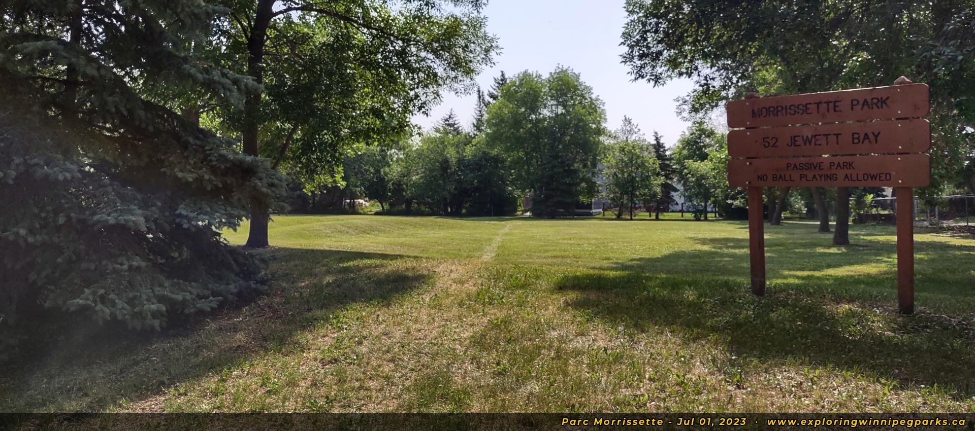 Parc Morrissette is nestled in behind the residential area of Jewett Bay and Sinnott St. There's a small open area in a peaceful clearing surrounded by trees.