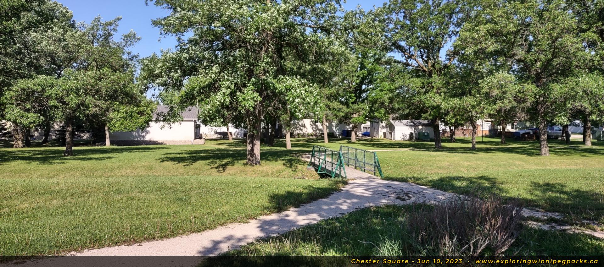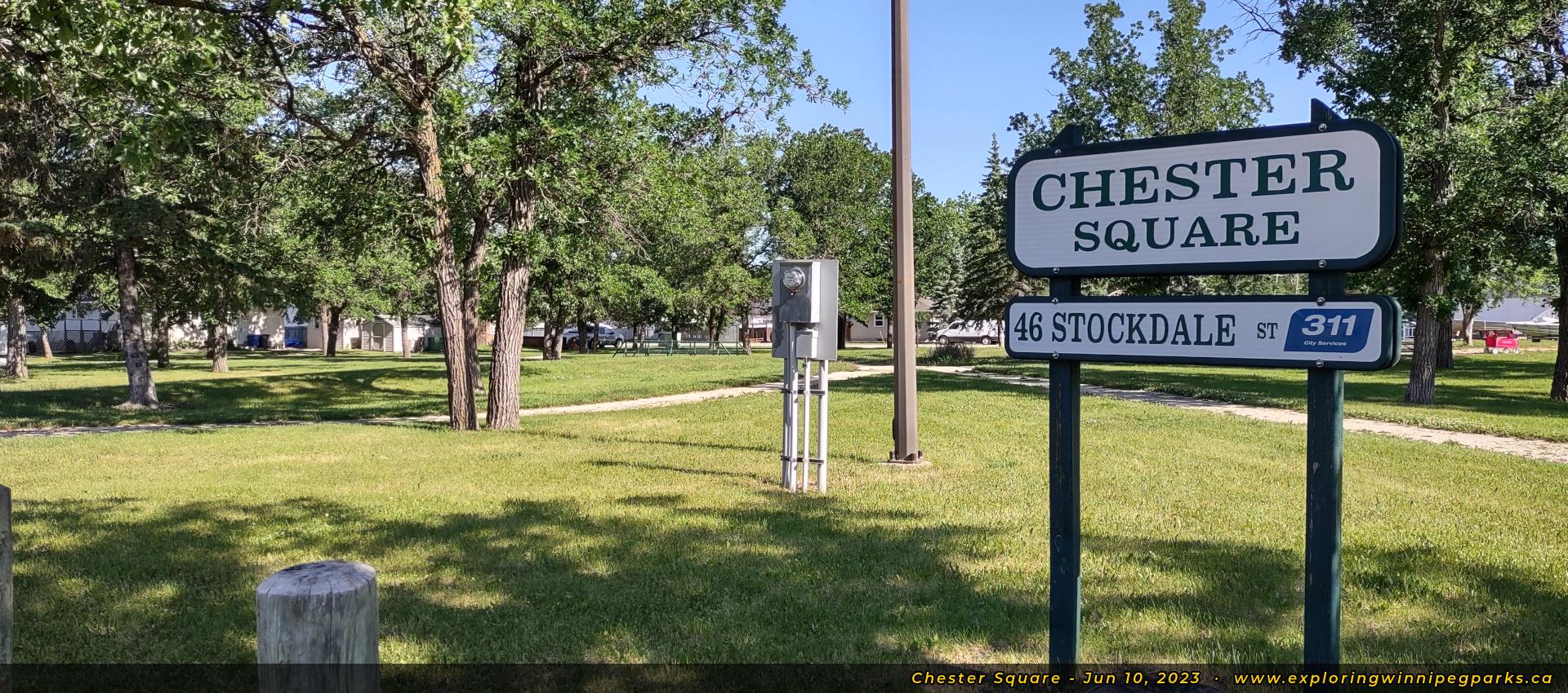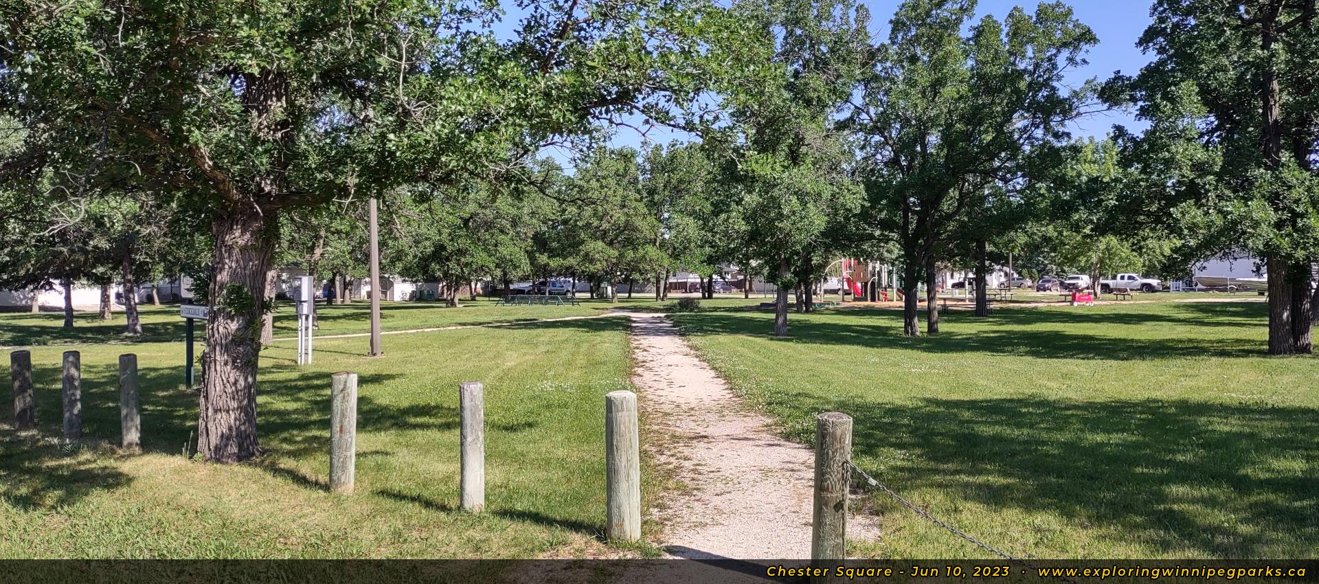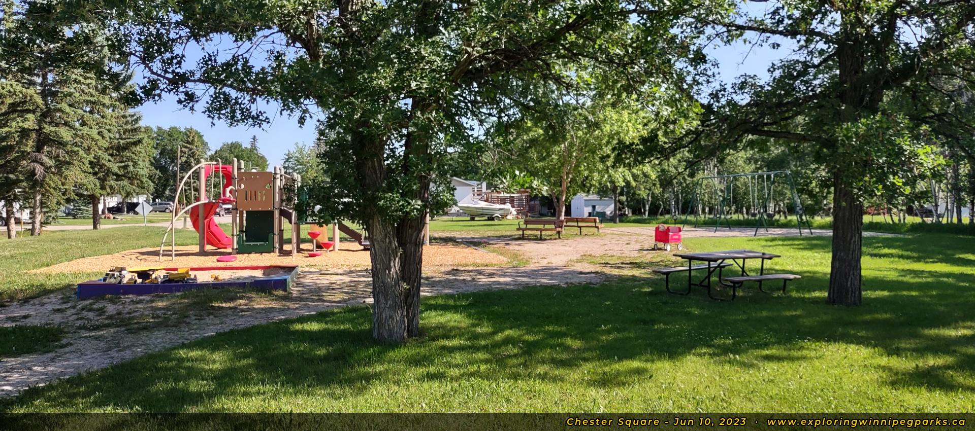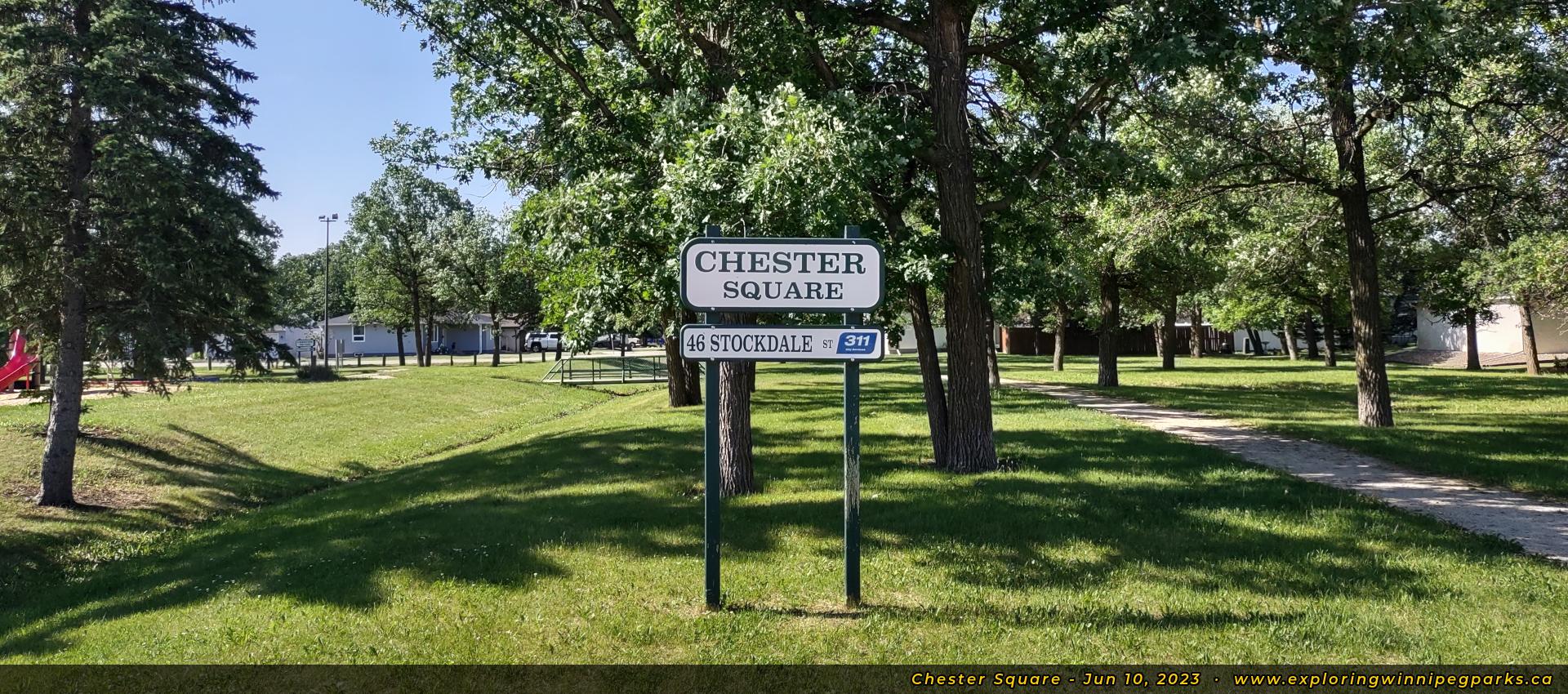 Chester Square is nestled in the residential area between City Ave and Stockdale St, just west of the Assiniboine Forest. Several pathways pass by a playground and greenspace.