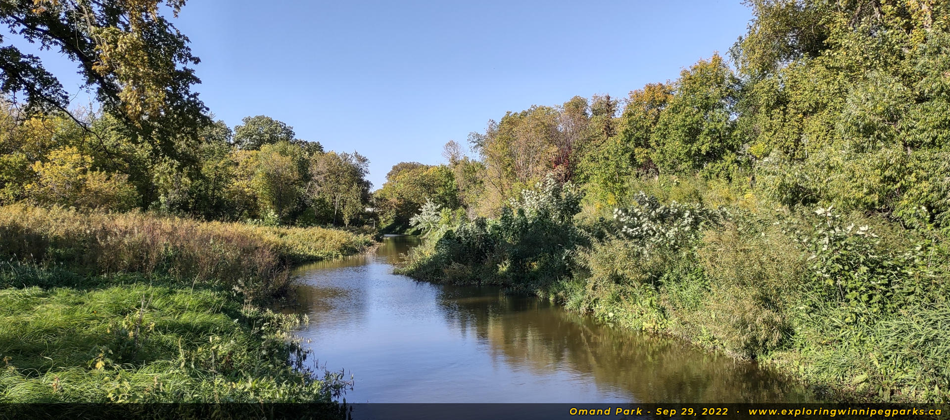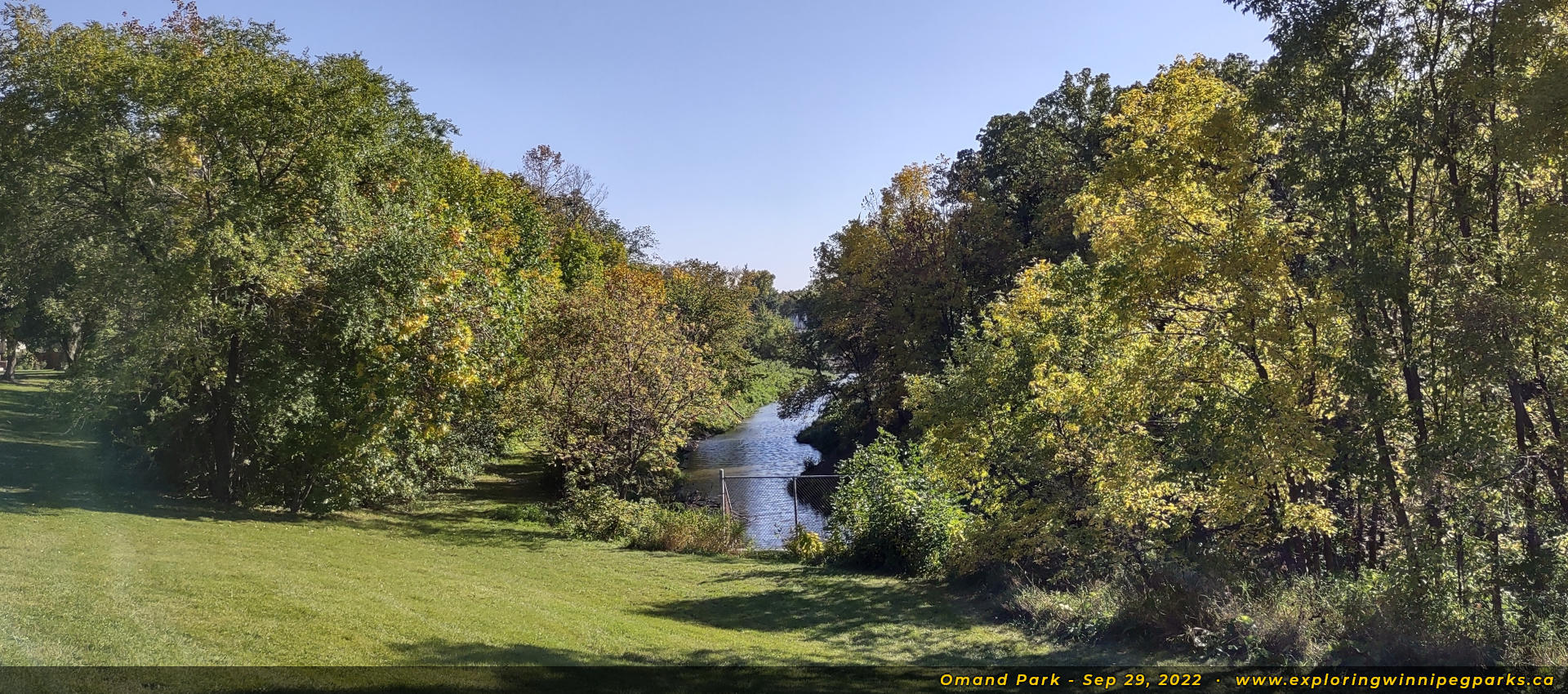 The narrow footbridge in the distance to the west crosses over the Assiniboine River, leading to Sir John Franklin Park.