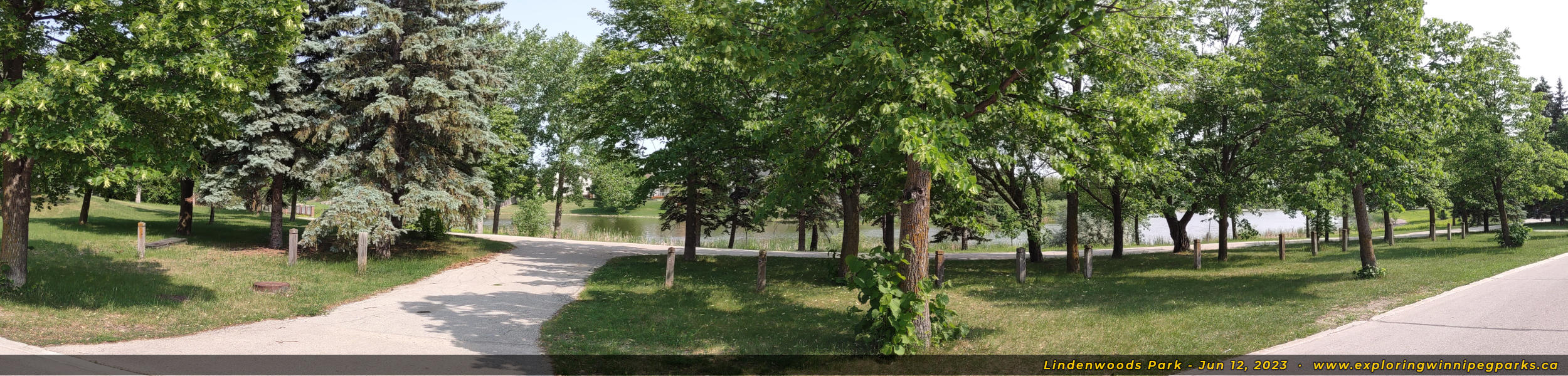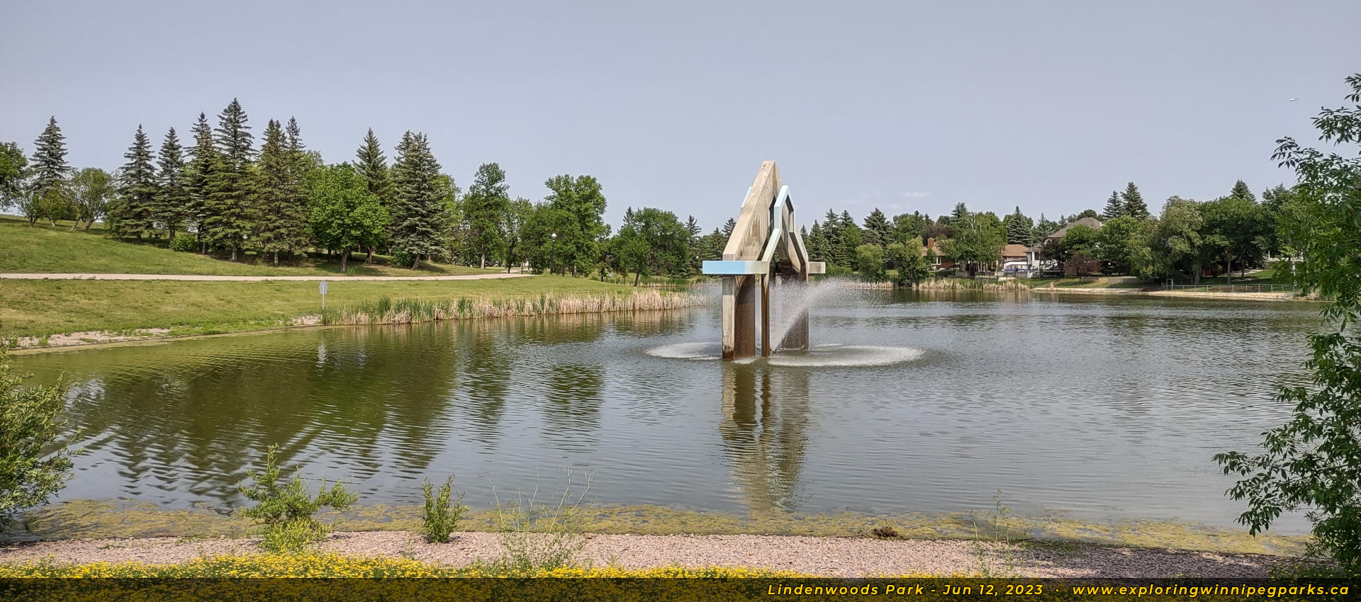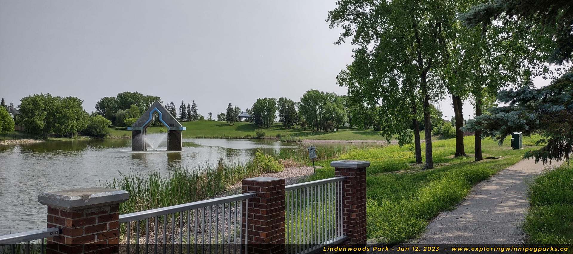 Lindenwoods Parks rests in the center of the Linden Woods neighbourhood, nestled in between Van Walleghem Park and Muys Park amongst several ponds. There's a long pathway following the western side of the central pond, passing by a number of benches and two fountains.