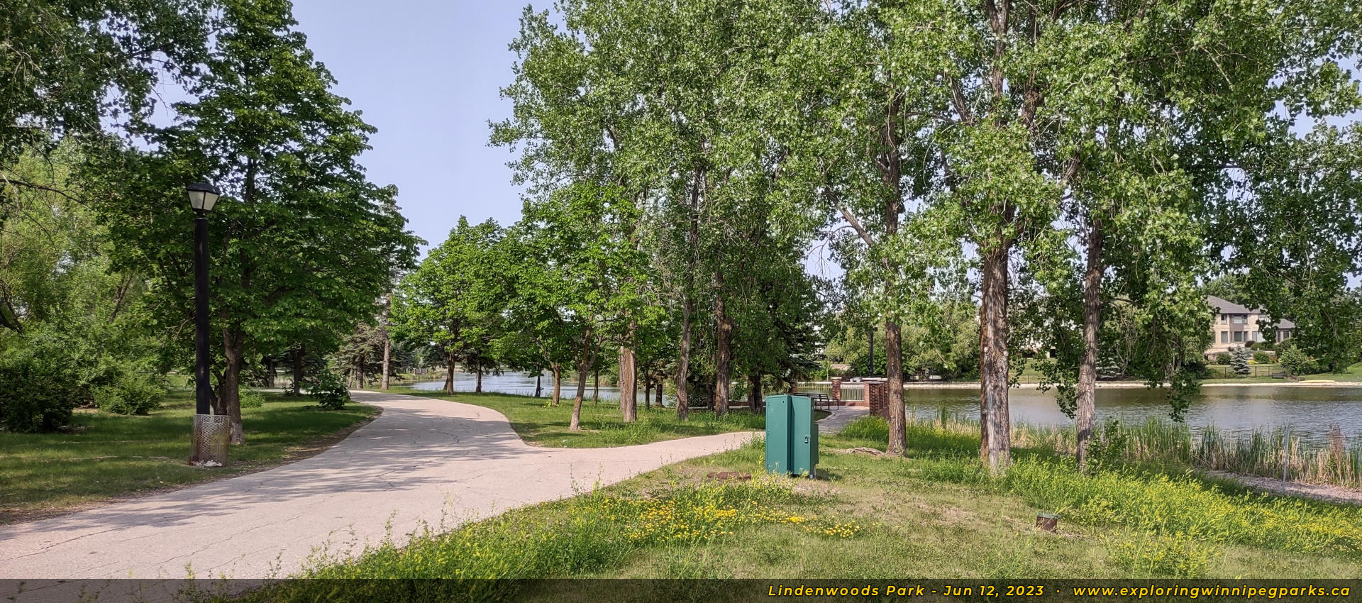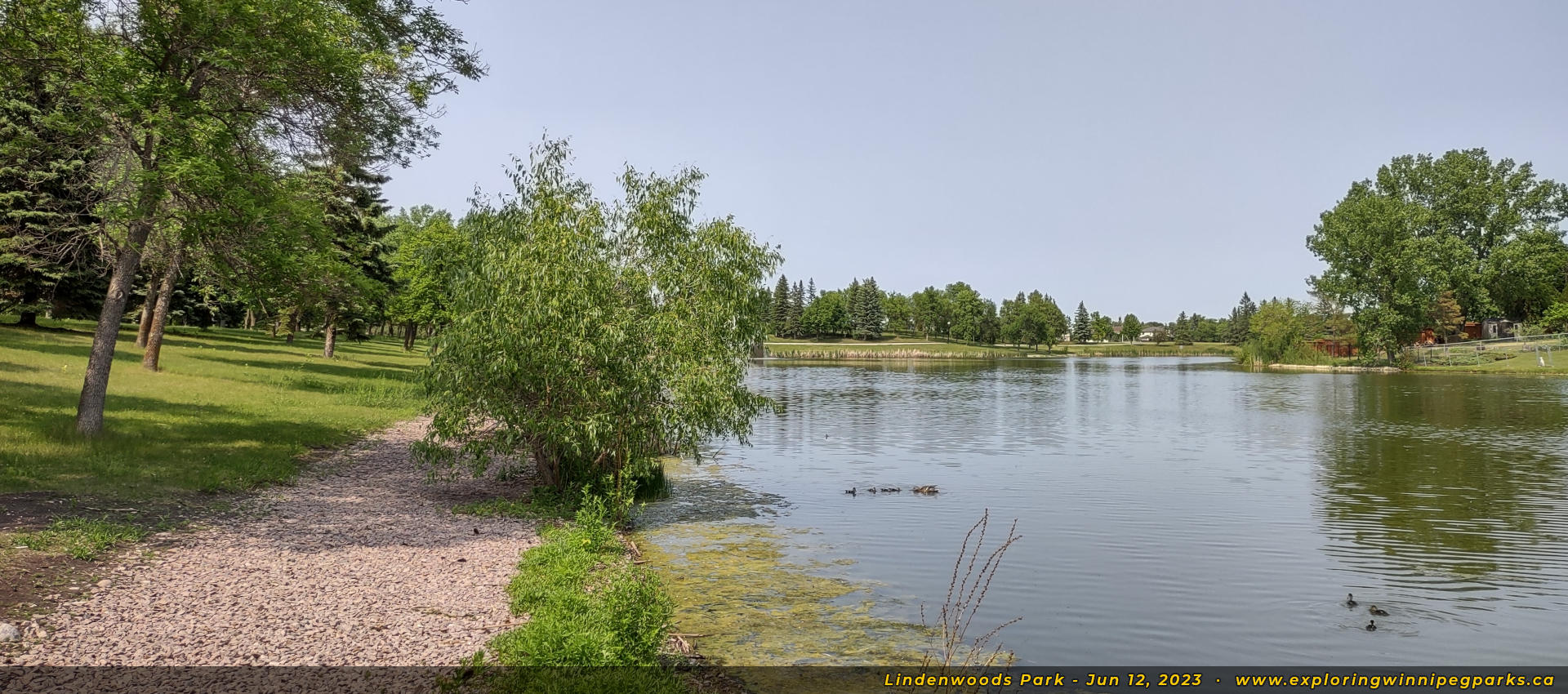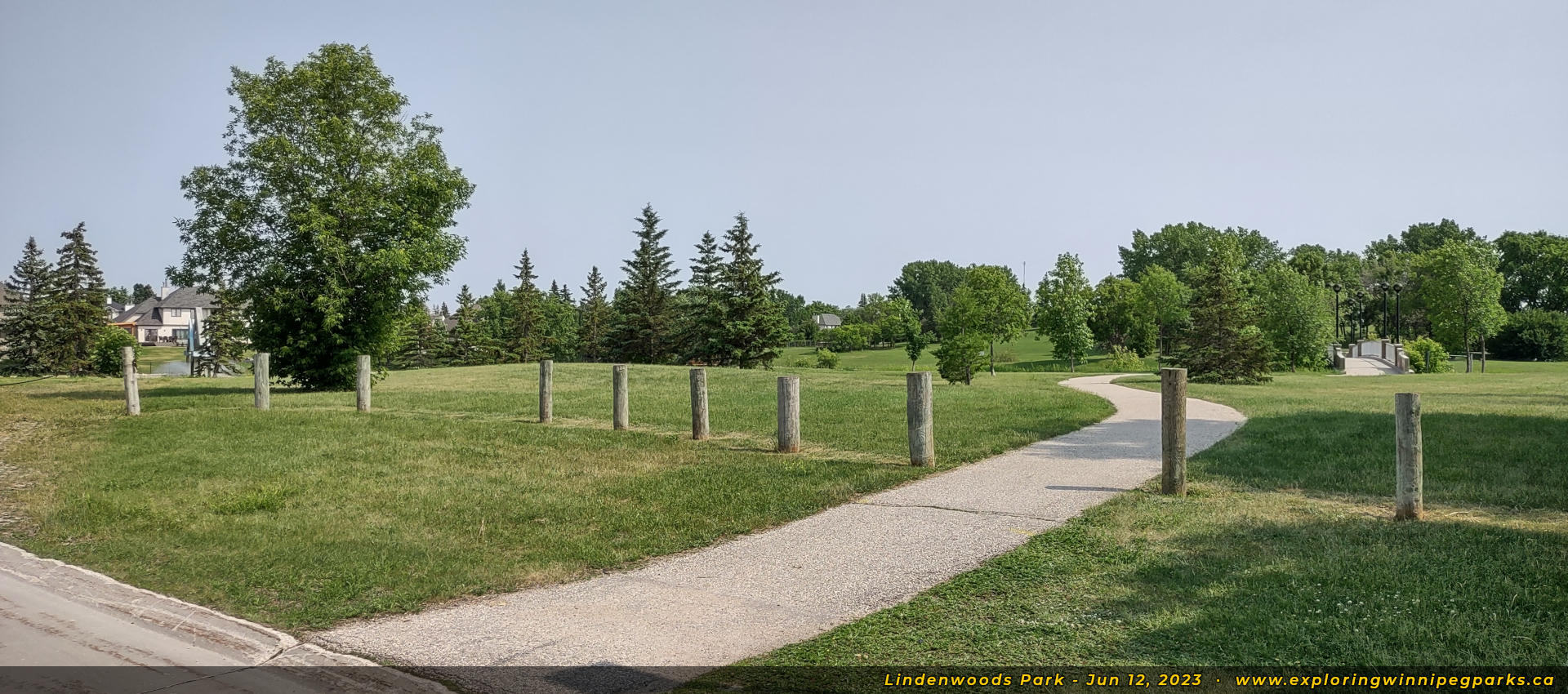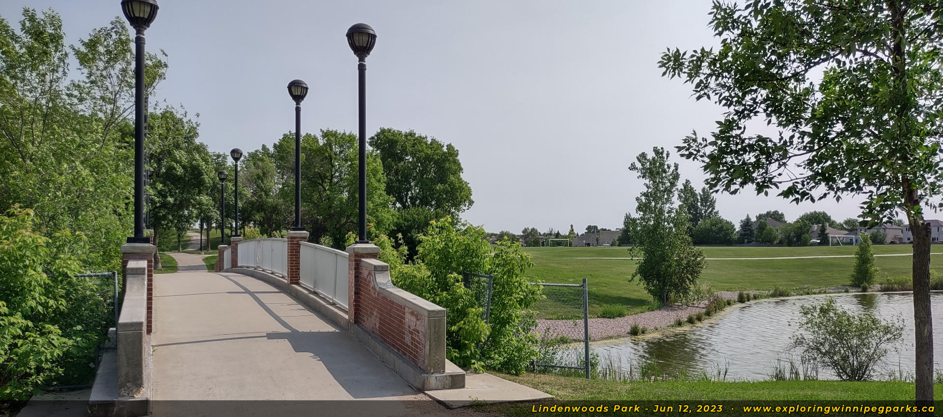 Lindenwoods Parks rests in the center of the Linden Woods neighbourhood, nestled in between Van Walleghem Park and Muys Park amongst several ponds. There's a long pathway following the western side of the central pond, passing by a number of benches and two fountains.