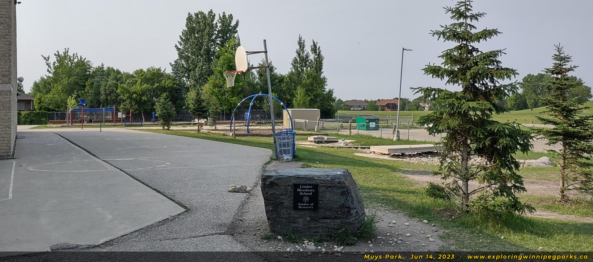 The Linden Meadows school playground sits beside the park, facing northeast.