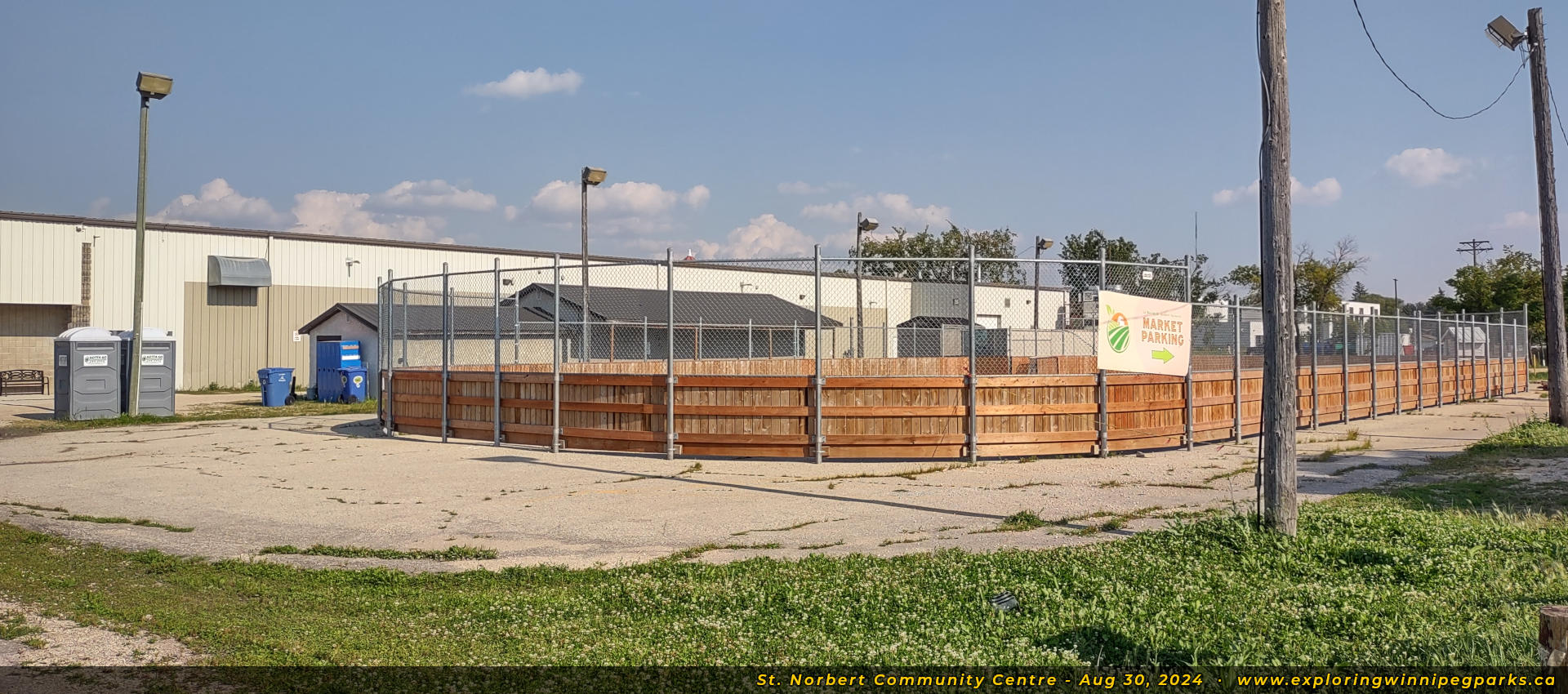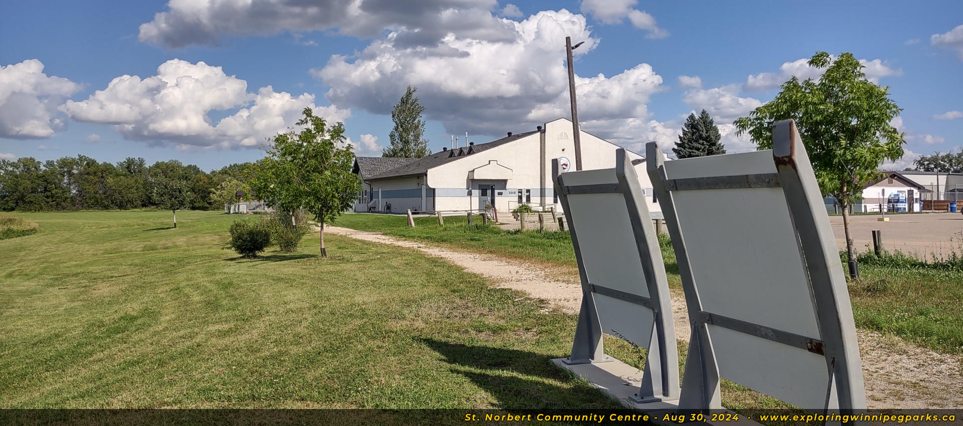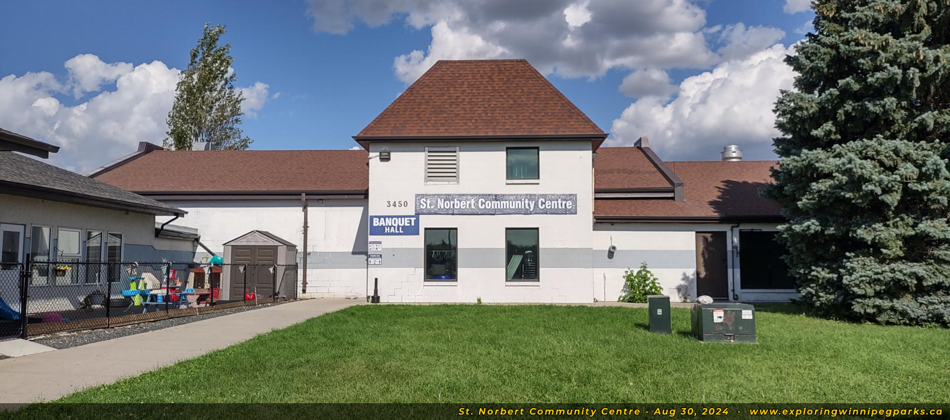 Welcome to the St. Norbert Community Centre! The main building sits next to the parking lot alongside Pembina Hwy, facing northeast.