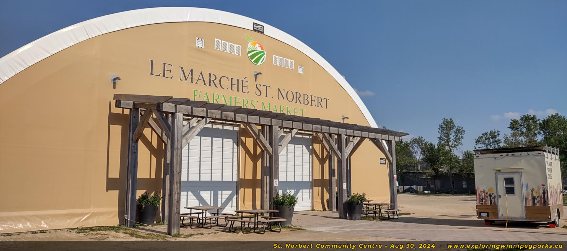 The St. Norbert Farmers' Market sits just south of the community centre grounds, facing east.