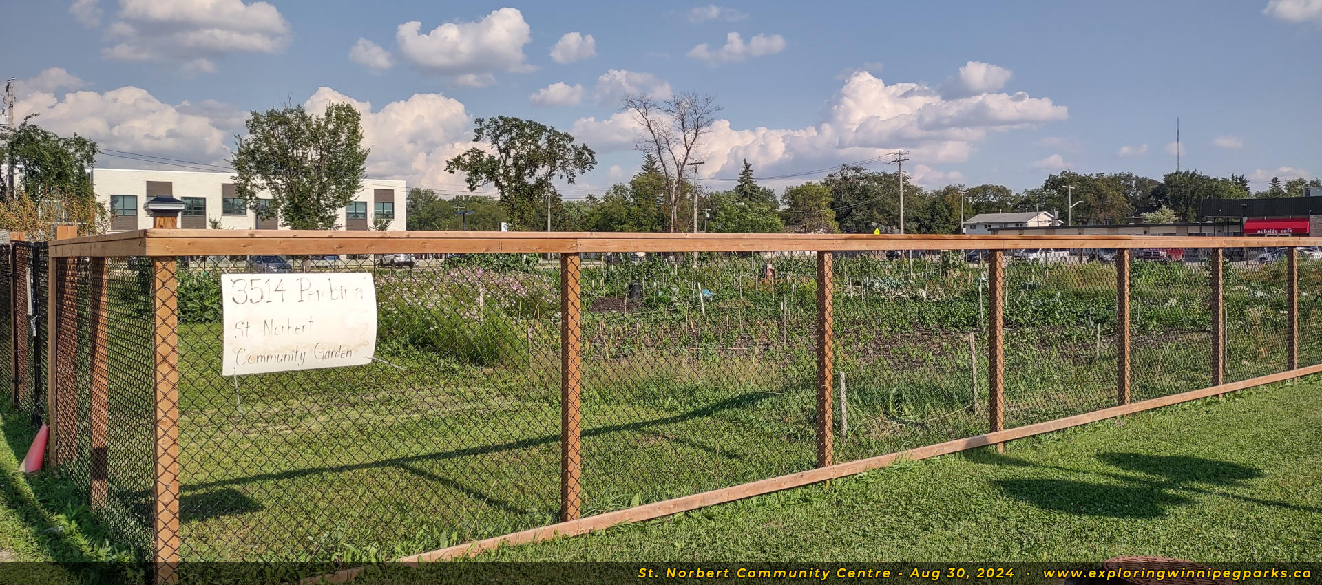 A ways south of the community centre, you'll find the St. Norbert Community Garden along Pembina Hwy. Facing east.