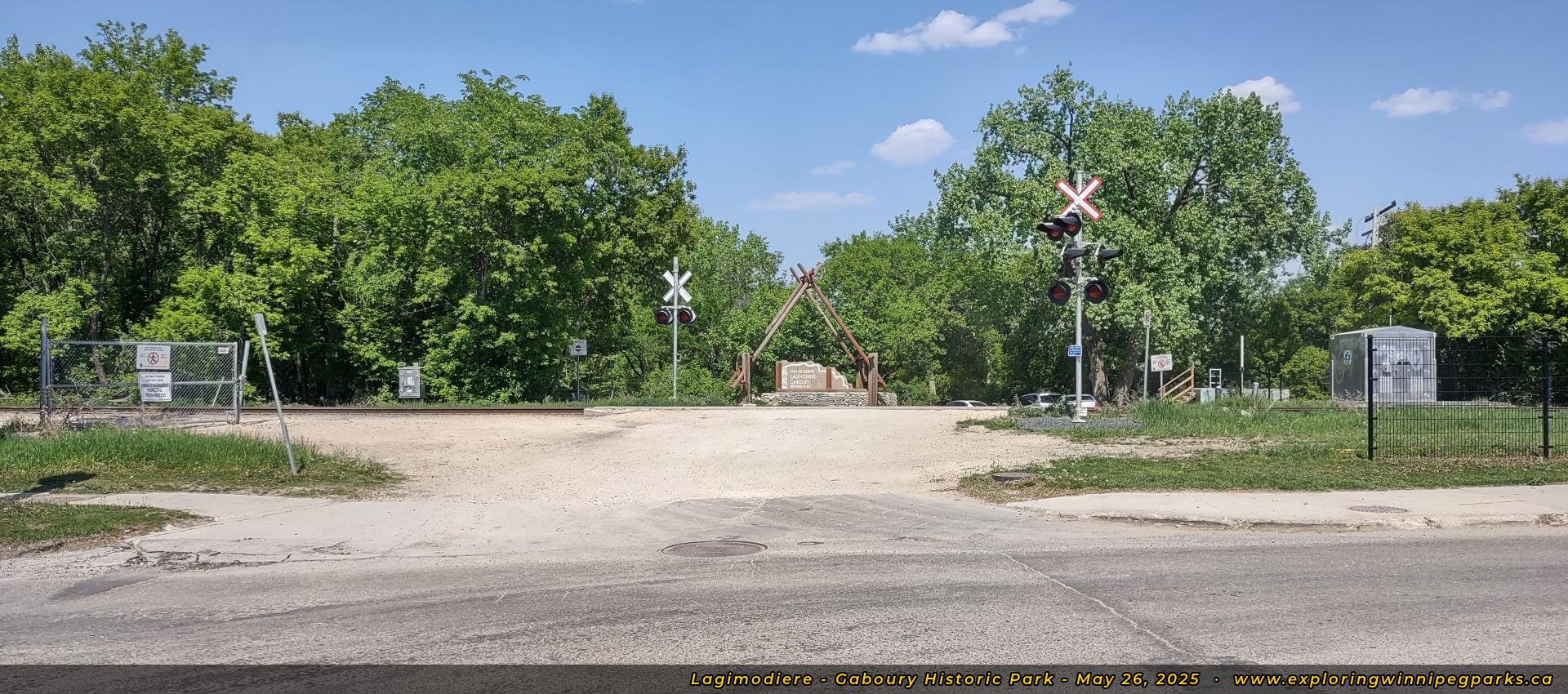 Welcome to Lagimodiere - Gaboury Historic Park! The entrance sign greets visitors at the east end of Notre Dame St, just off Thibault St.