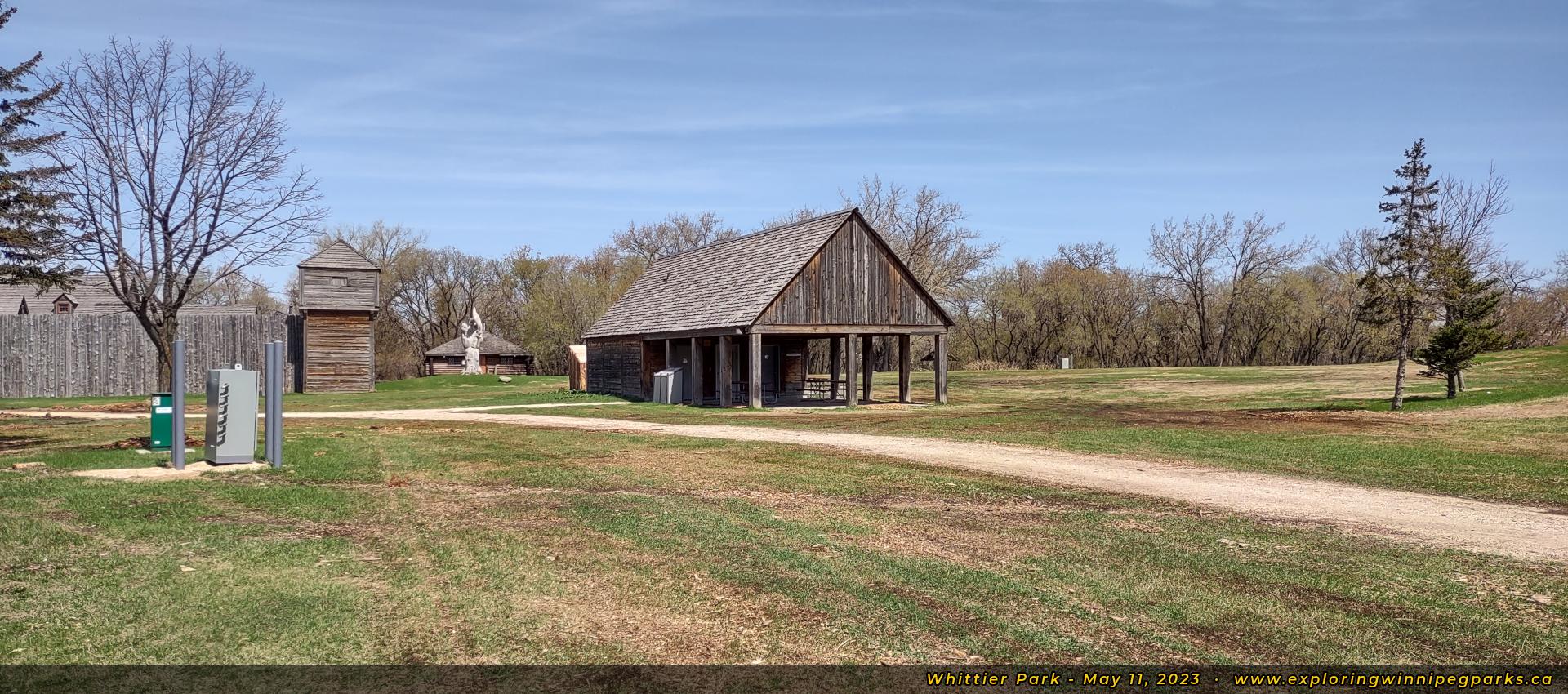 A rest stop and public washrooms are found just southeast of the fort, north of the parking lot. Facing north.
