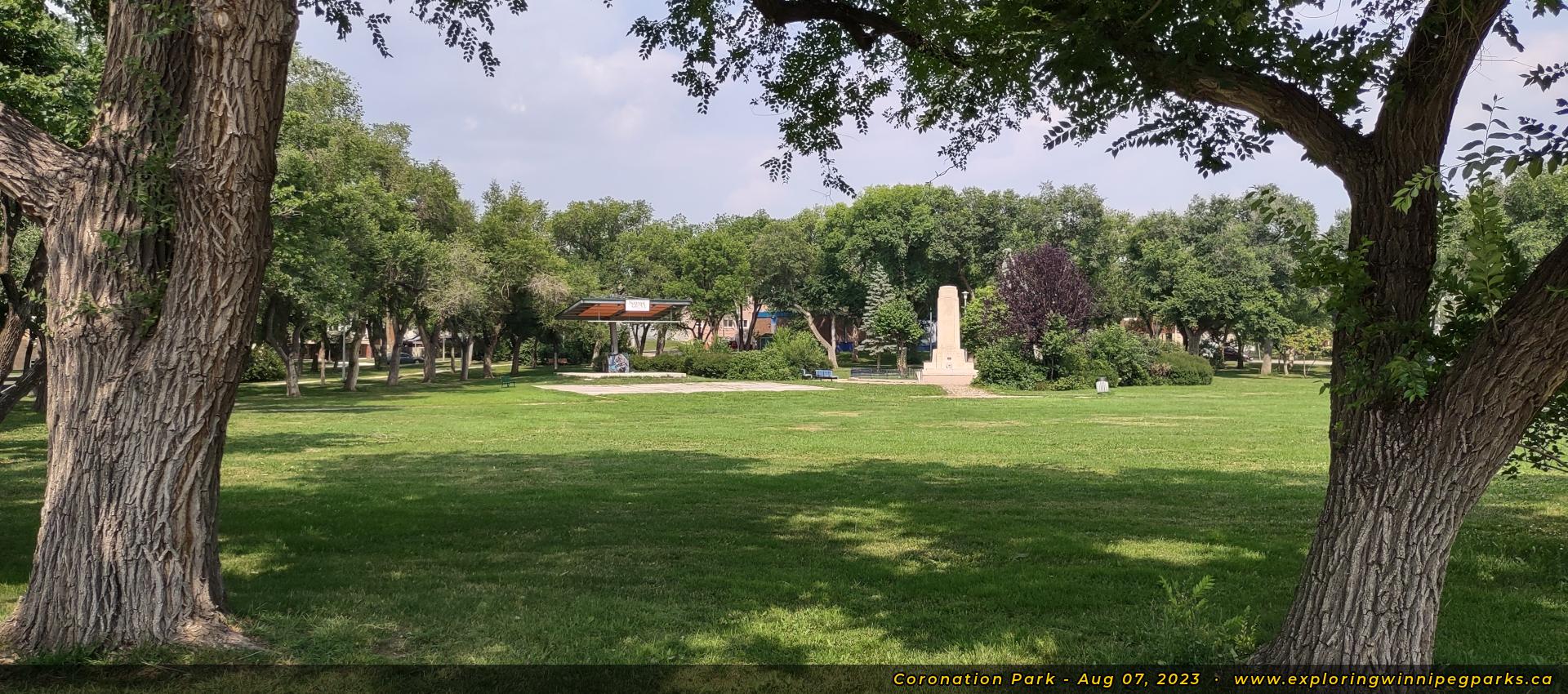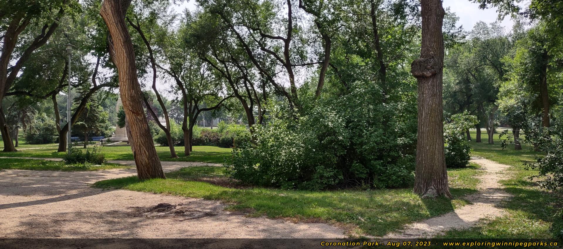 Coronation Park runs along the northeast side of St. Mary's Rd, between Eugenie St and Taché Ave. The park area offers a network of pathways with plenty of benches, and a war memorial. An outdoor stage is found next to the war memorial, offering a space for local community events, concerts, and Festival du Voyageur activities.