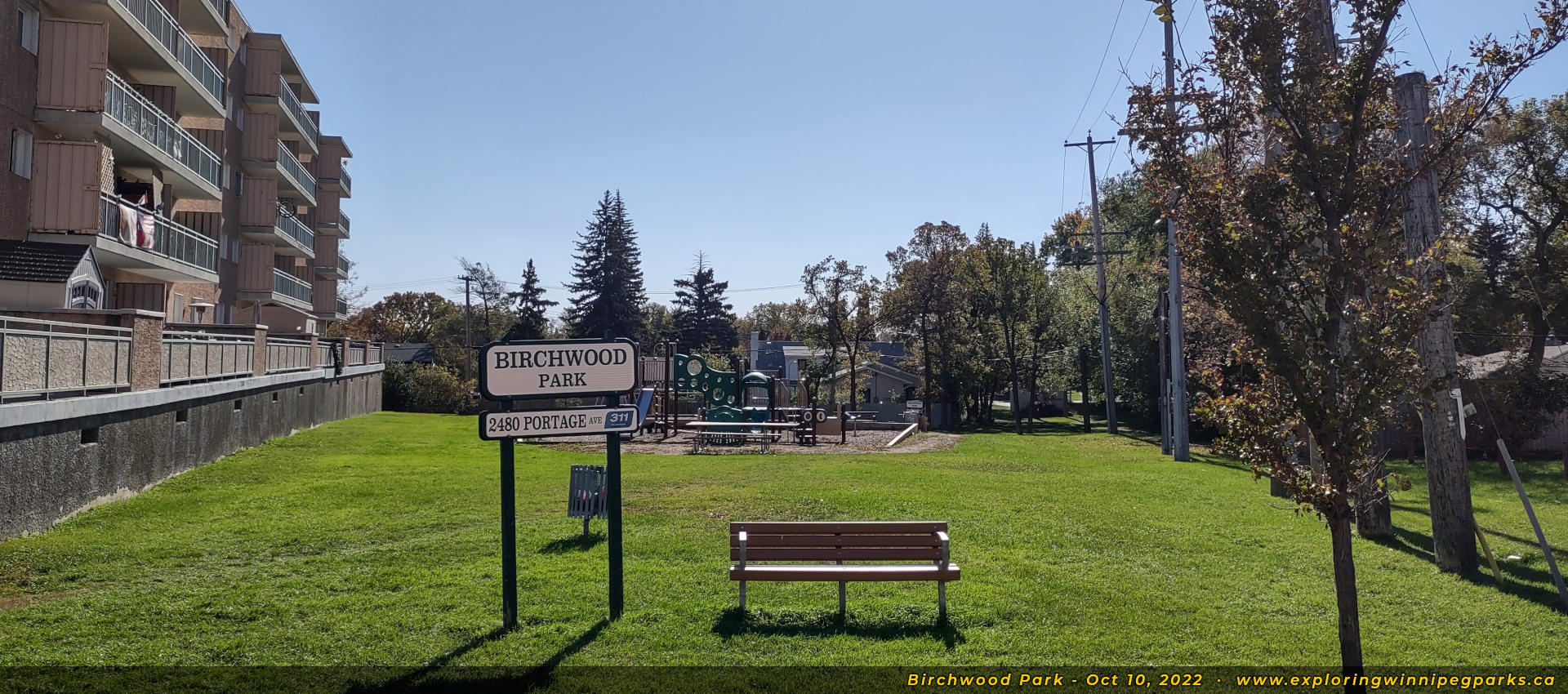 Birchwood Park is found along the south side of Portage Ave, just east of Olive St, nestled in next to the Birchwood Terrace apartments. There's a playground and small open area.