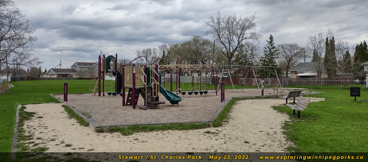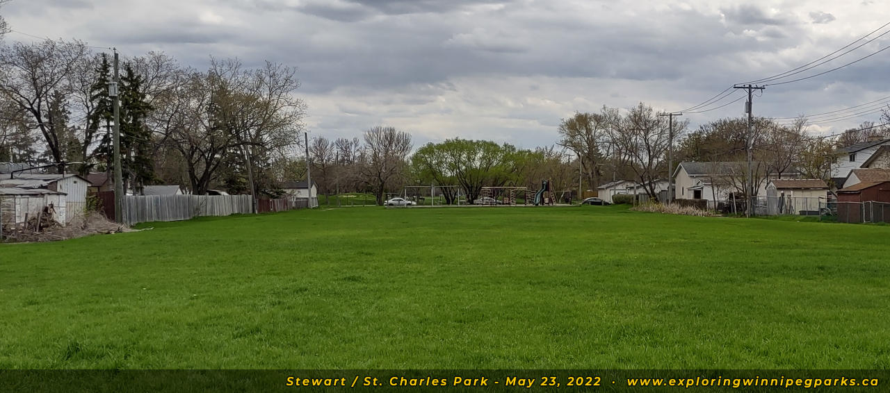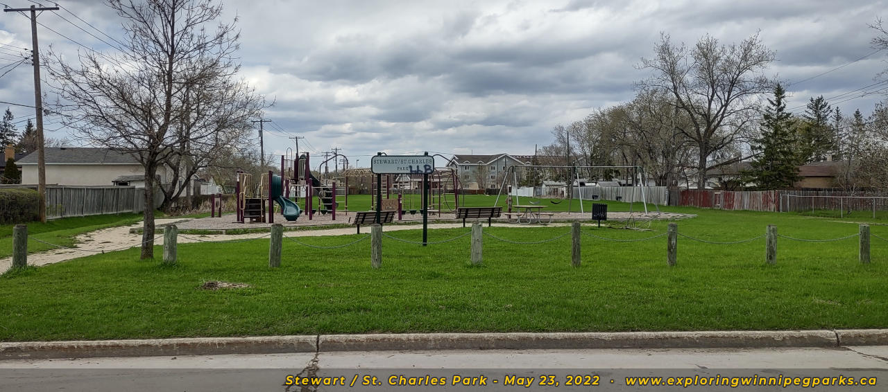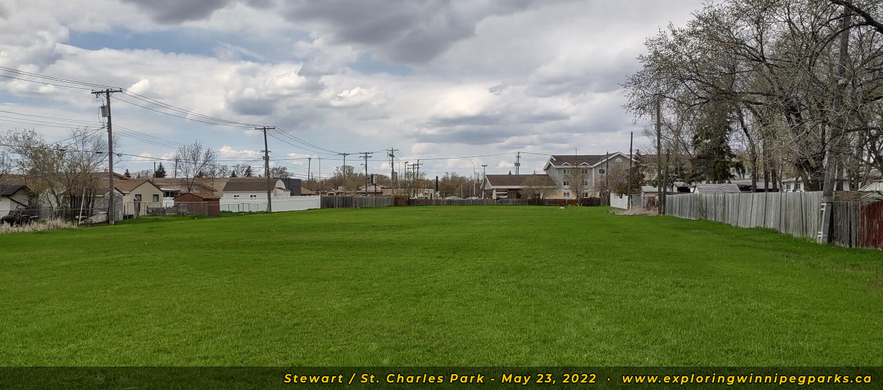 Stewart / St. Charles Park is located on the north side of Allard Ave, between St. Charles St and Stewart St. There's a playground, and a long thin open area.