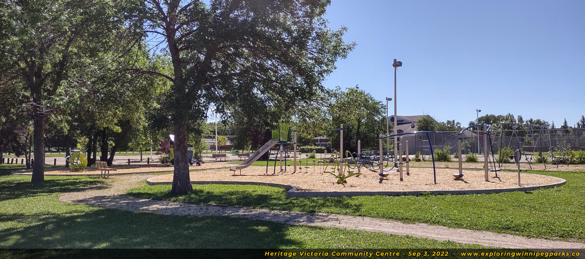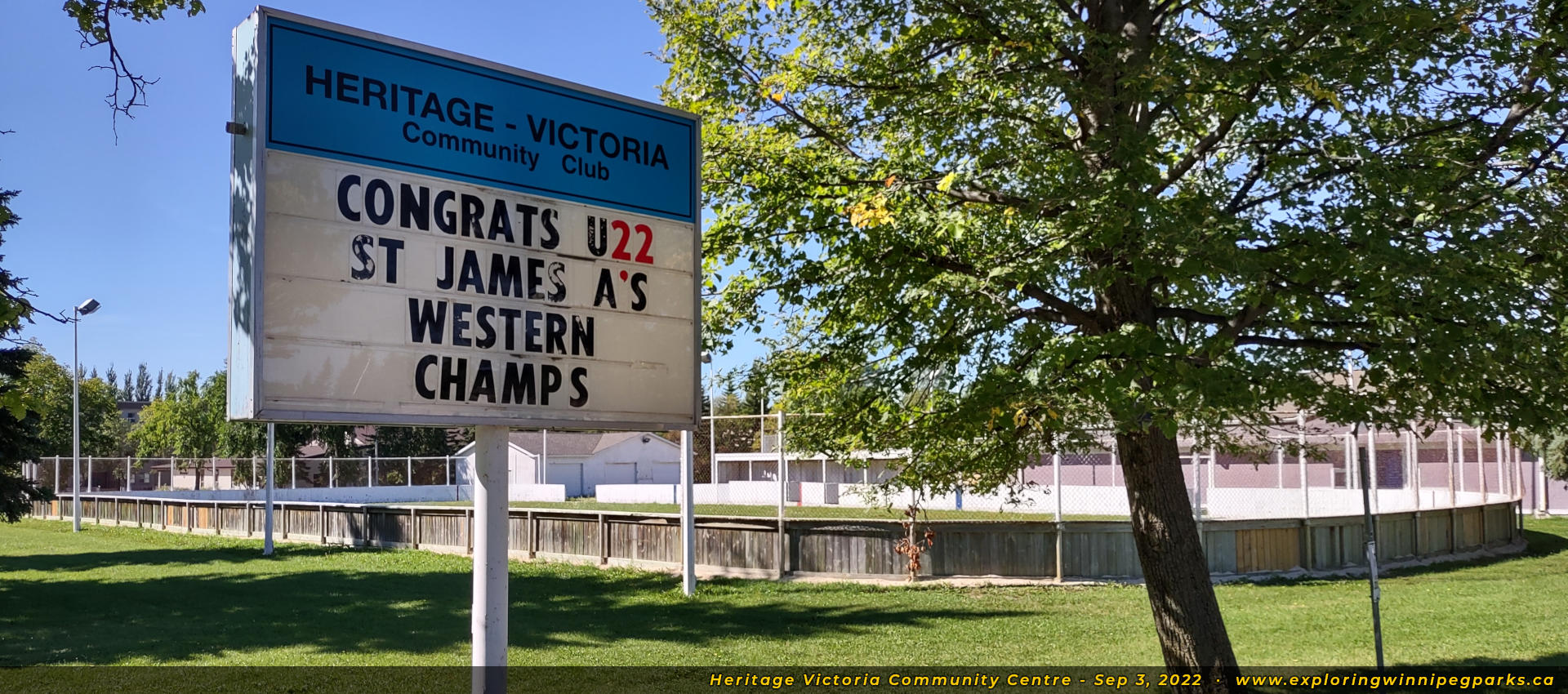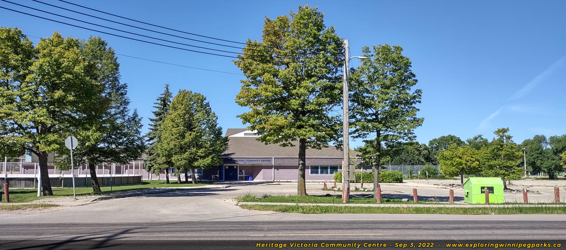The Heritage Victoria Community Centre is found along the west side of Sturgeon Rd, between Silver Ave and Thornton Ave. There is a basketball and tennis court, two hockey rinks, a soccer field, a baseball diamond, and a playground. The Matt Jonsson Memorial Skatepark is found at the north end of the park area.