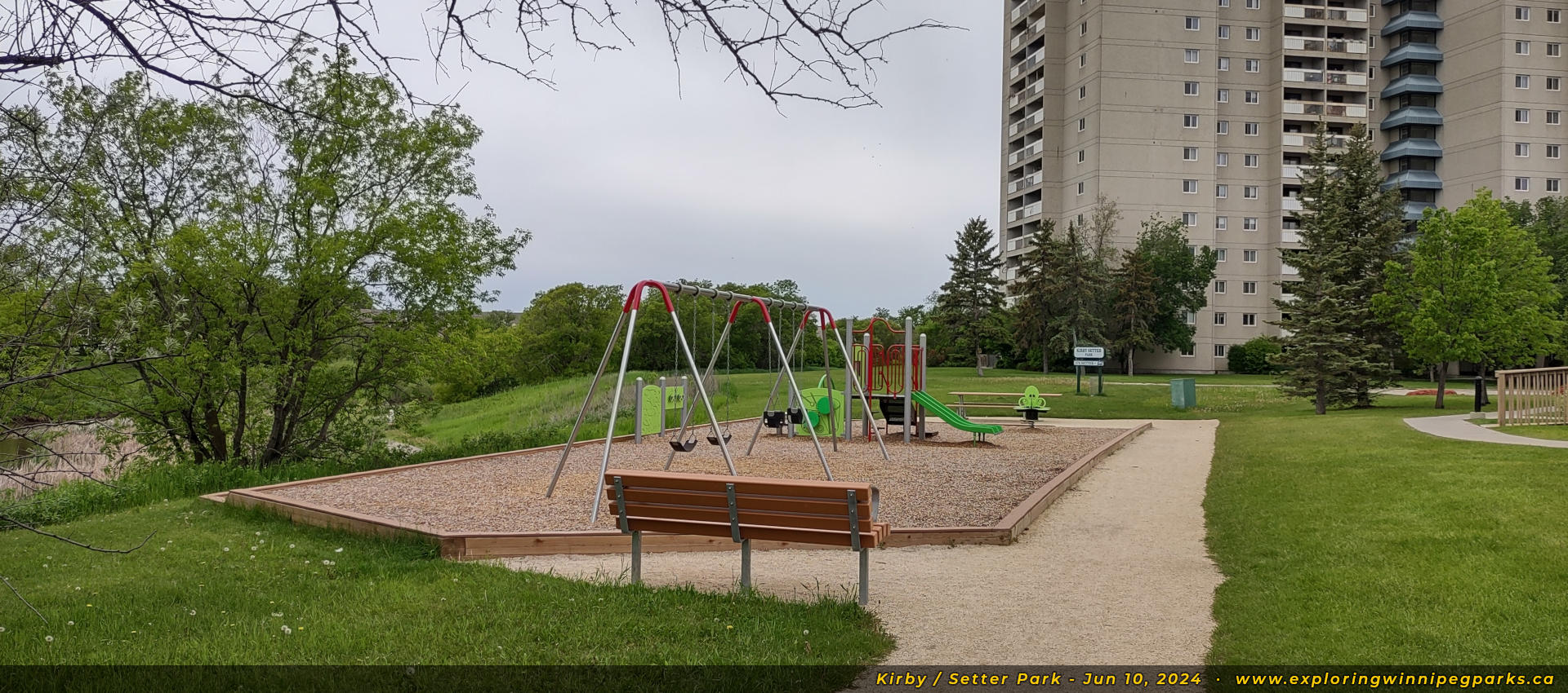 Kirby / Setter Park is found at the south end of Setter St, nestled up against the Sturgeon Creek Parkway just west of Sturgeon Rd. There's a playground, and a great overlook of the parkway.