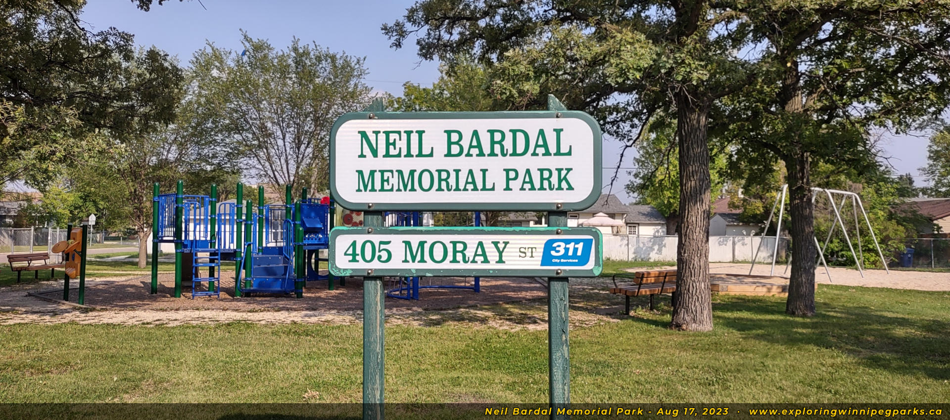 Neil Bardal Memorial Park is found on the southeast corner of the intersection between Bruce Ave and Moray St. There's a playground and a small open area.