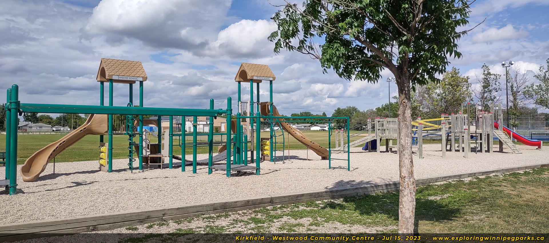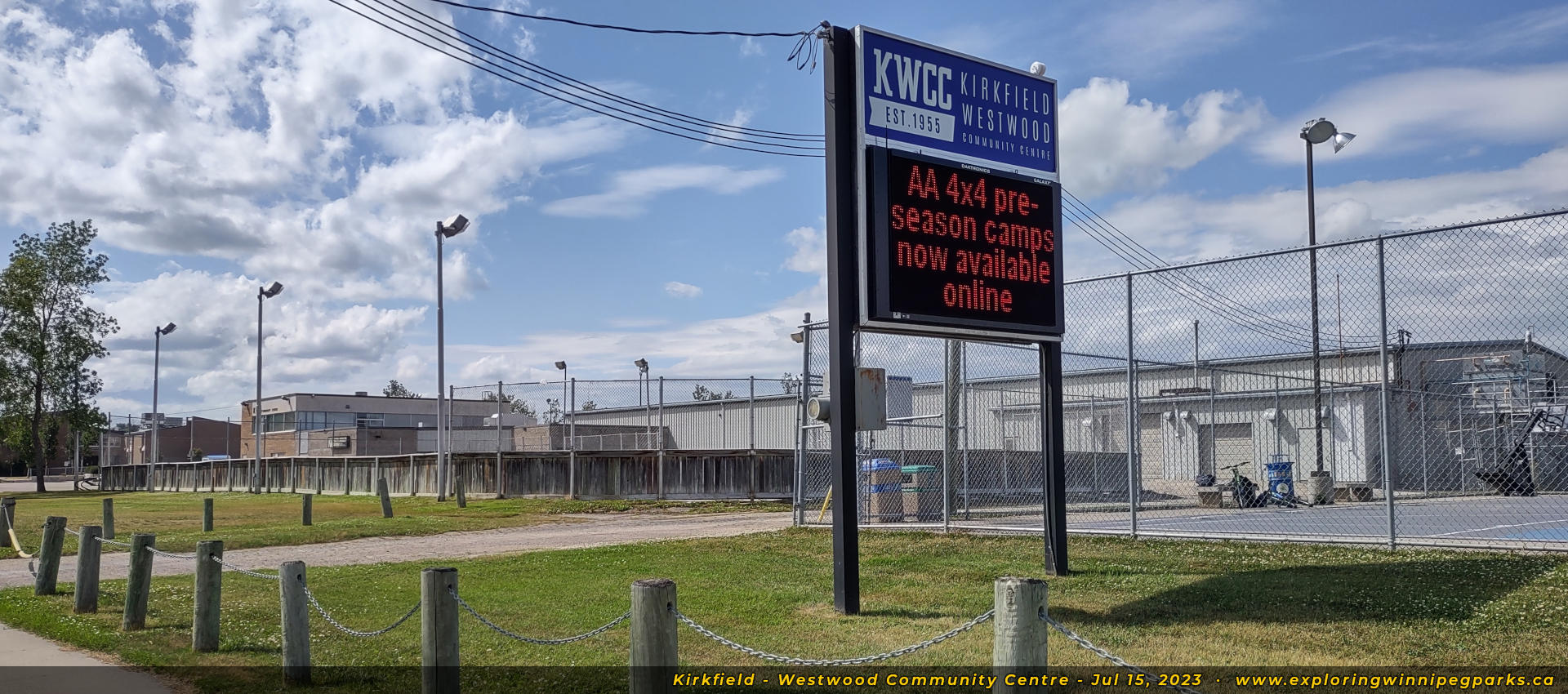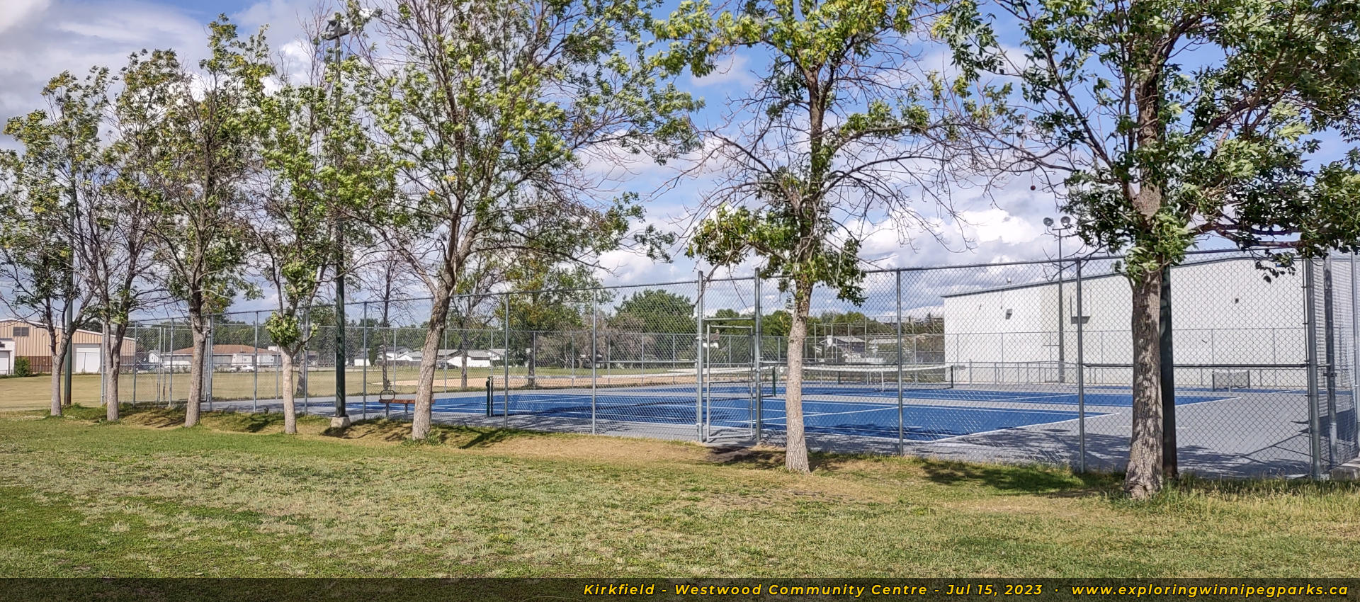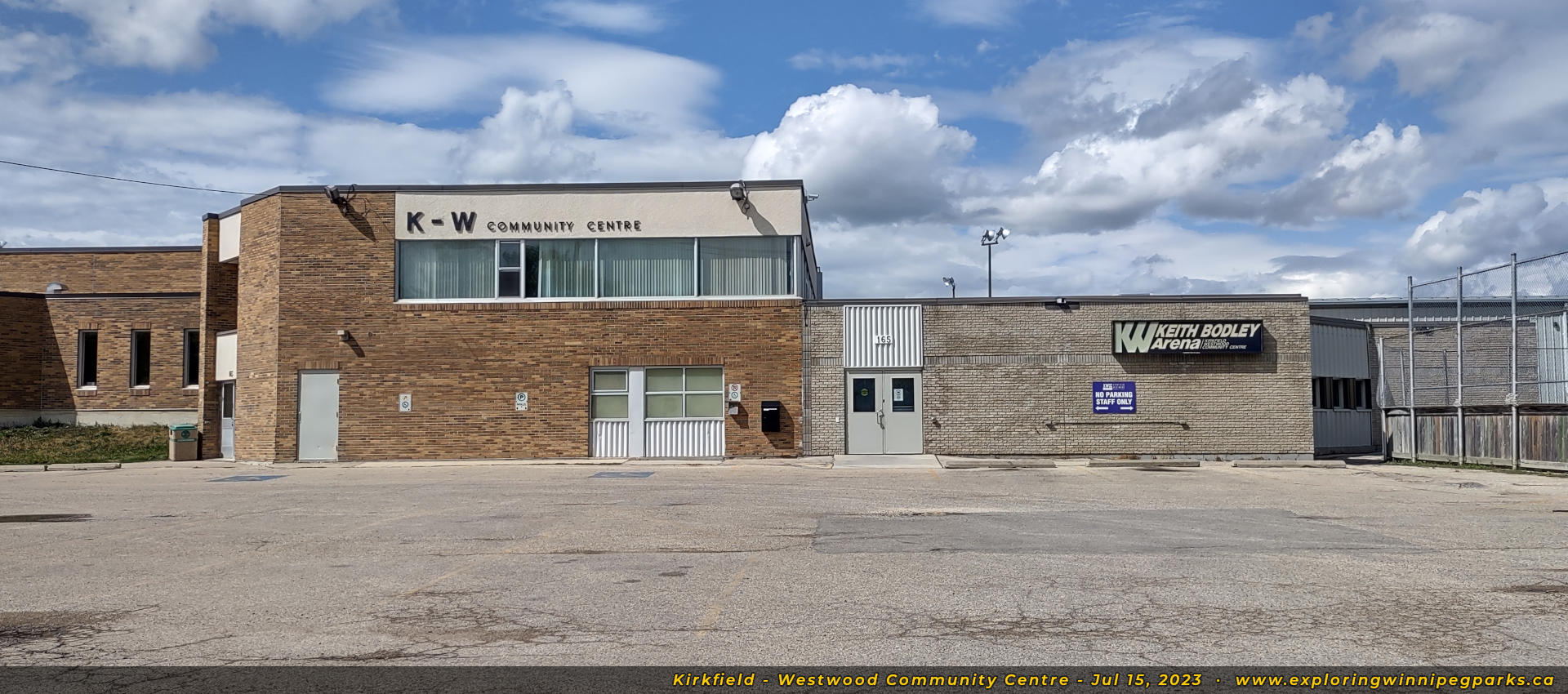 The Kirkfield - Westwood Community Centre is found on the north side of Sansome Ave, between Bedson St and Rouge Rd. The community centre building is attached to the Keith Bodley Arena, found between Sansome School and Westwood Collegiate. The Westwood Library and Kinsmen-Allard Arena are found on its north boundary along Allard Ave. There are several baseball diamonds, a soccer field and athletic track, tennis and basketball courts, and a hockey rink.
