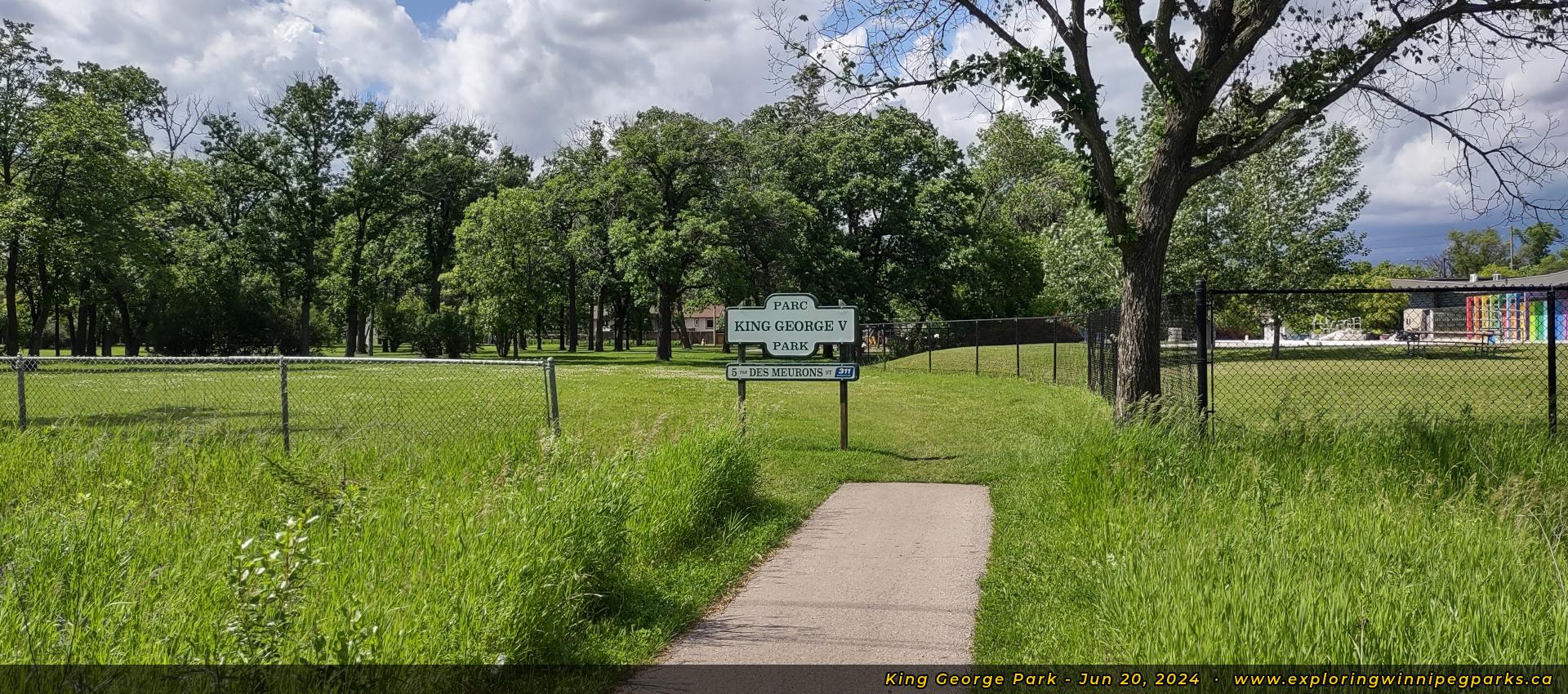 King George Park is found at the south end of Des Meurons St, nestled up on the north side of Fermor Ave. Featuring the St. Vital Pool, the park also has a playground and an open area dotted with trees.